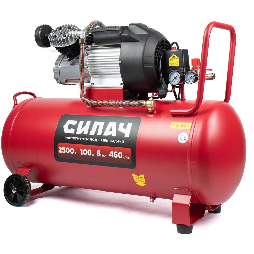 Купить Воздушный компрессор СИЛАЧ ВКД-100.2500 (460л/мин,объем100л,2,5кВт,8бар,2850об/мин) (1/6) 024553 по лучшей цене с доставкой - интернет магазин №1 в России