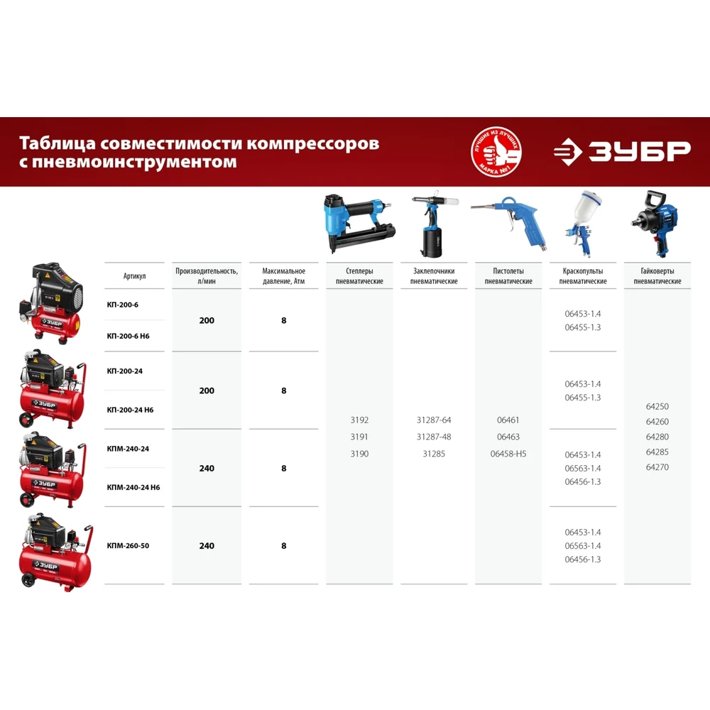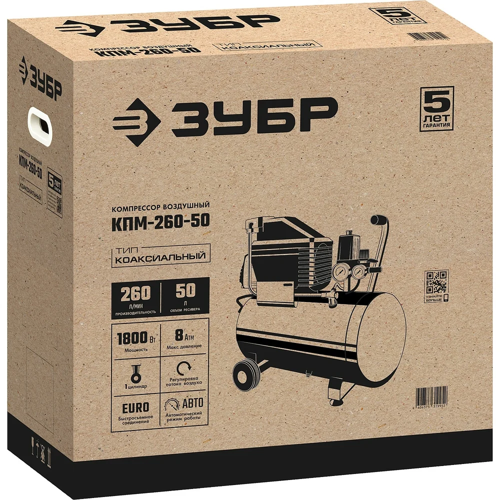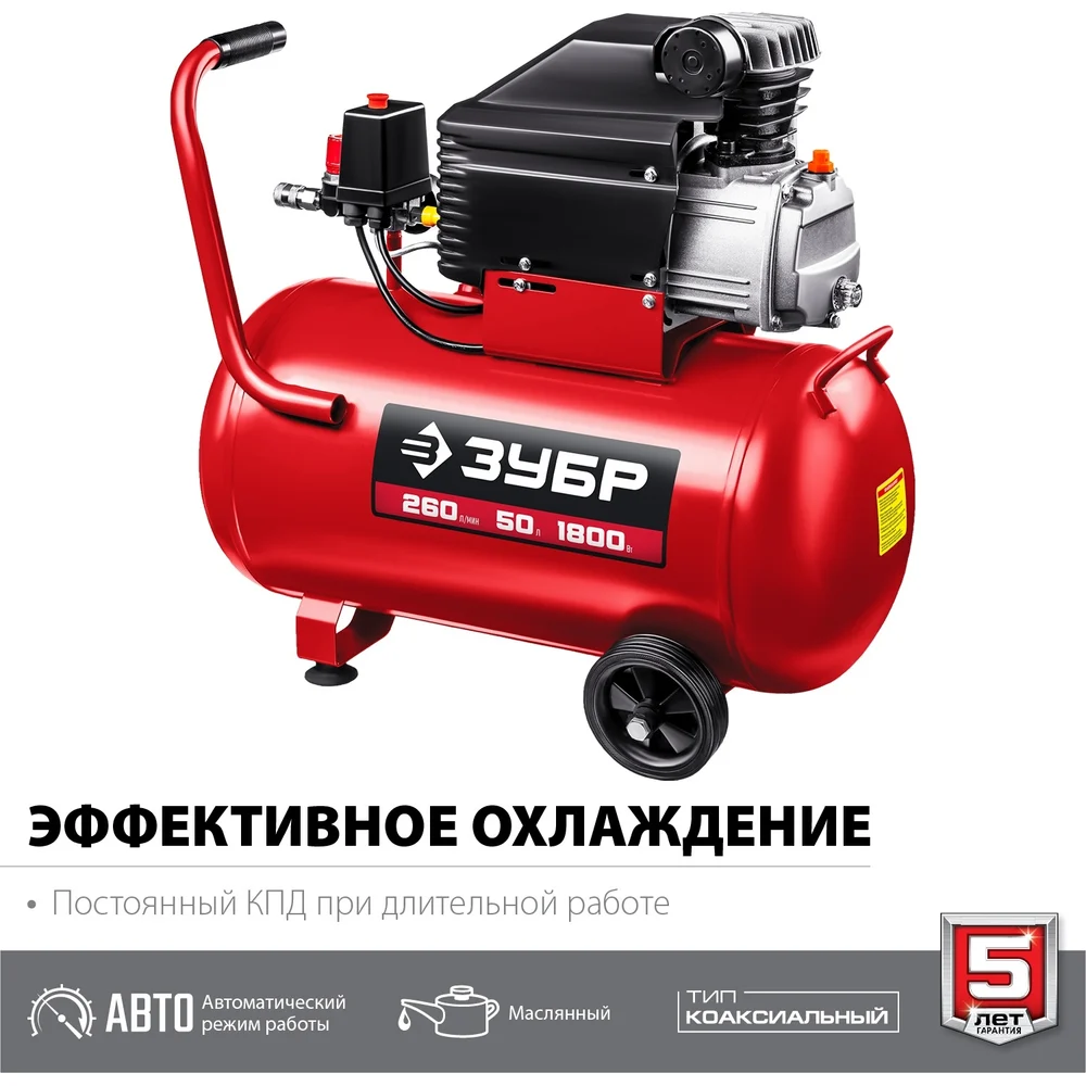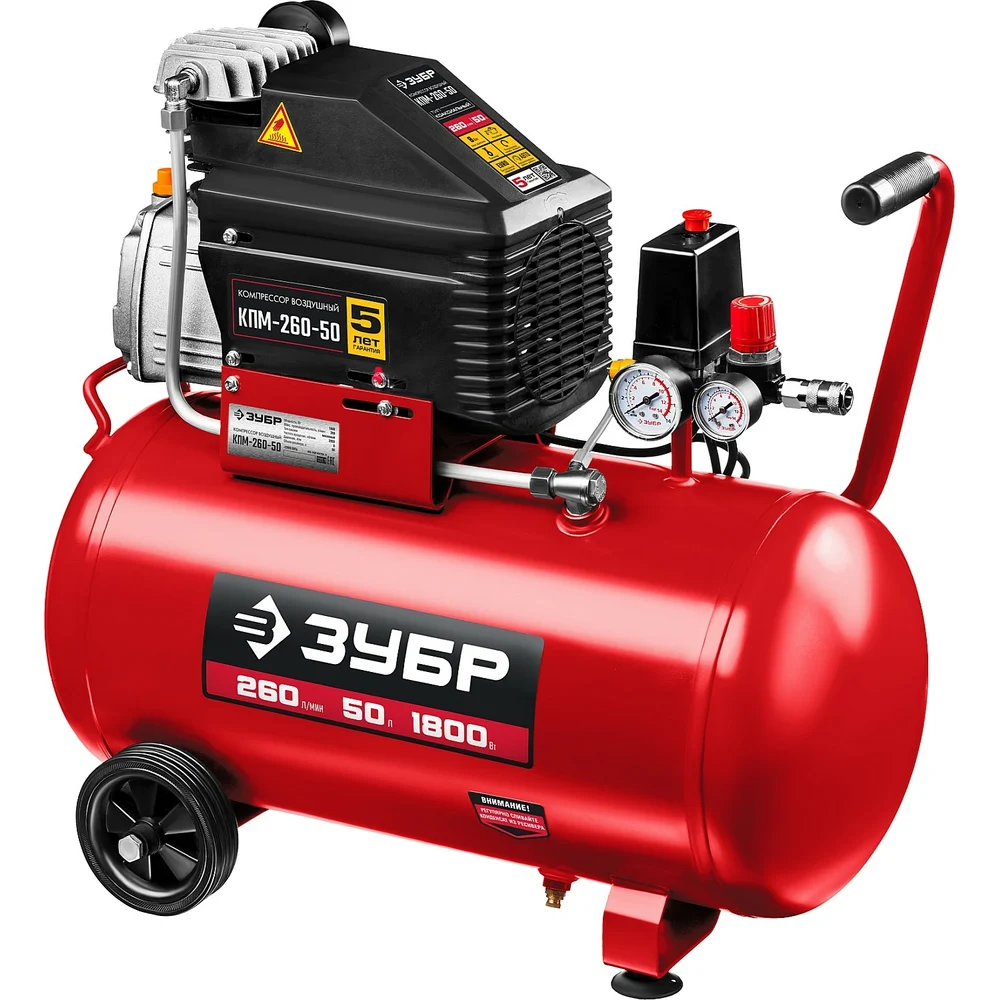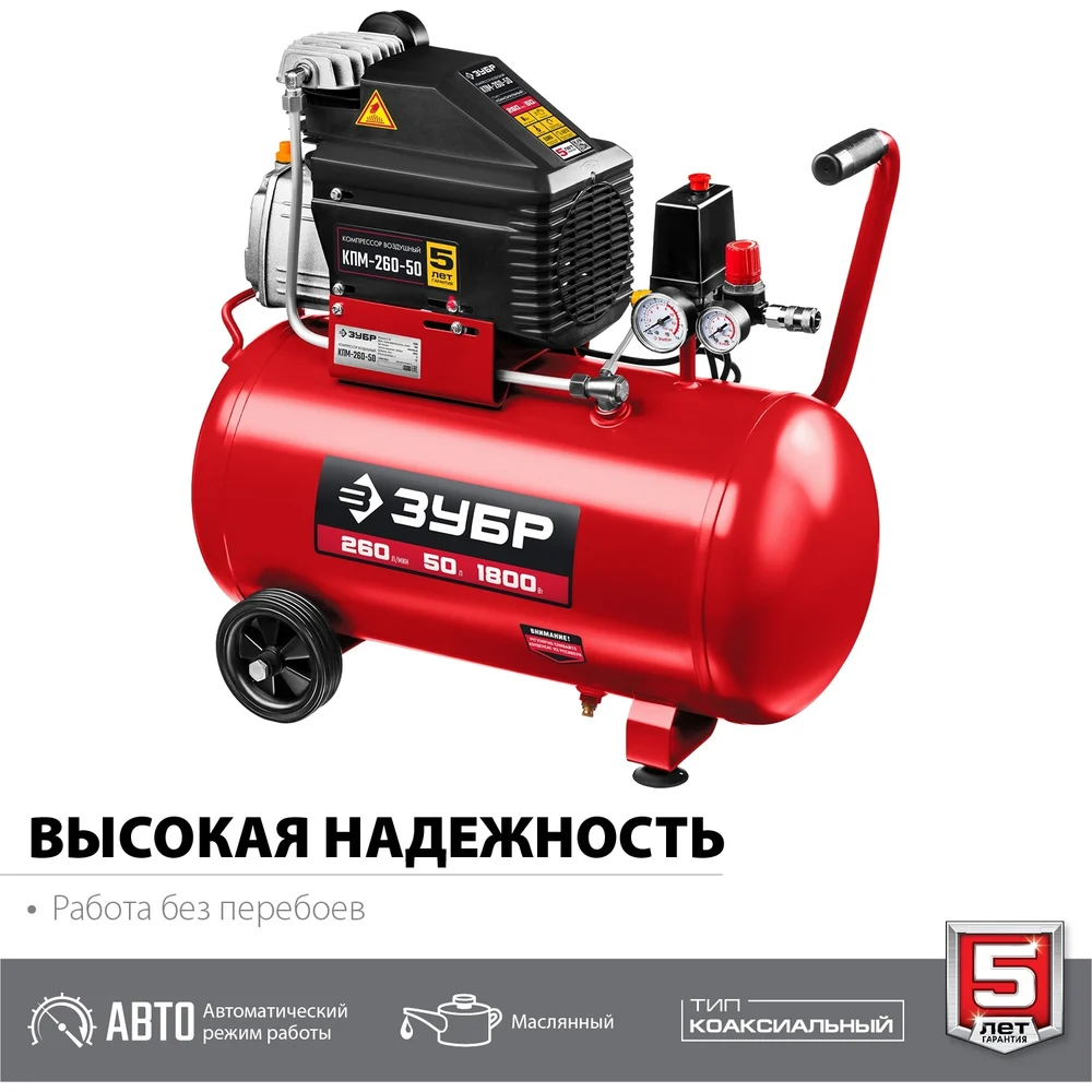 Купить Воздушный масляный компрессор ЗУБР 260 л/мин, 1800 Вт КПМ-260-50 по лучшей цене с доставкой - интернет магазин №1 в России