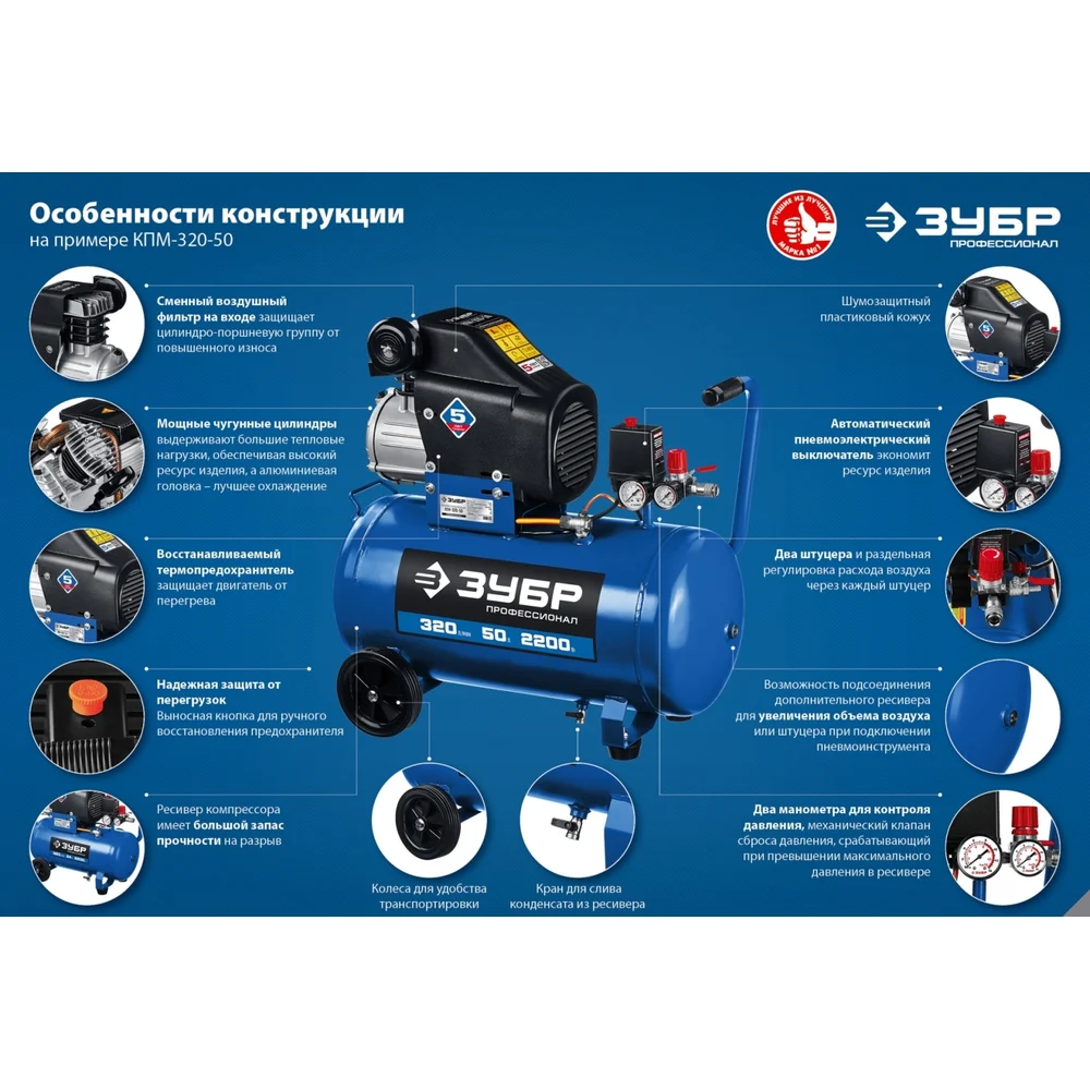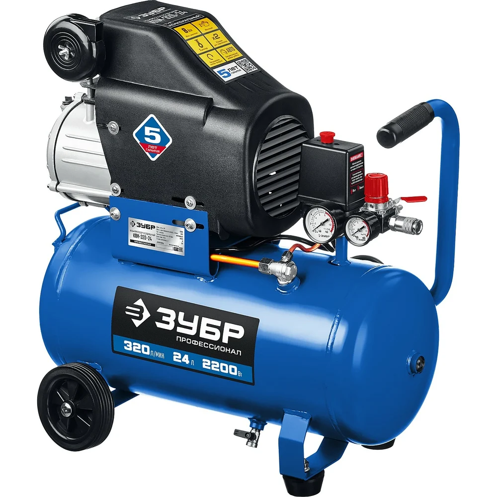 Купить Воздушный масляный компрессор ЗУБР Профессионал 320 л/мин, 24 л, 2200 Вт КПМ-320-24 по лучшей цене с доставкой - интернет магазин №1 в России
