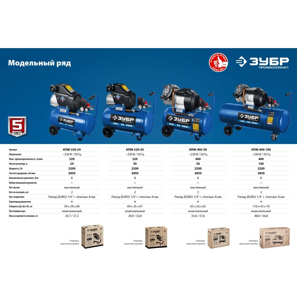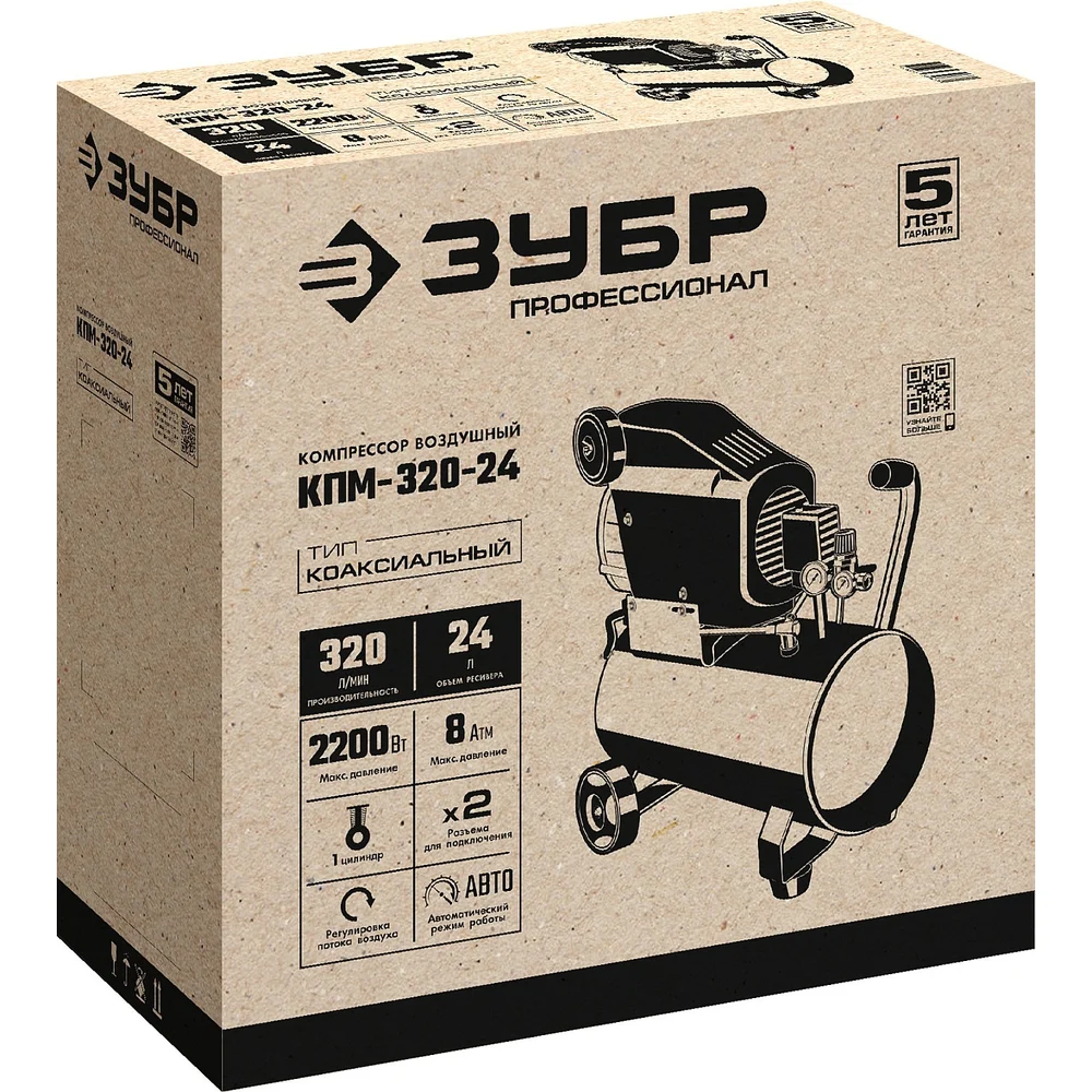 Воздушный масляный компрессор ЗУБР Профессионал 320 л/мин, 24 л, 2200 Вт КПМ-320-24
