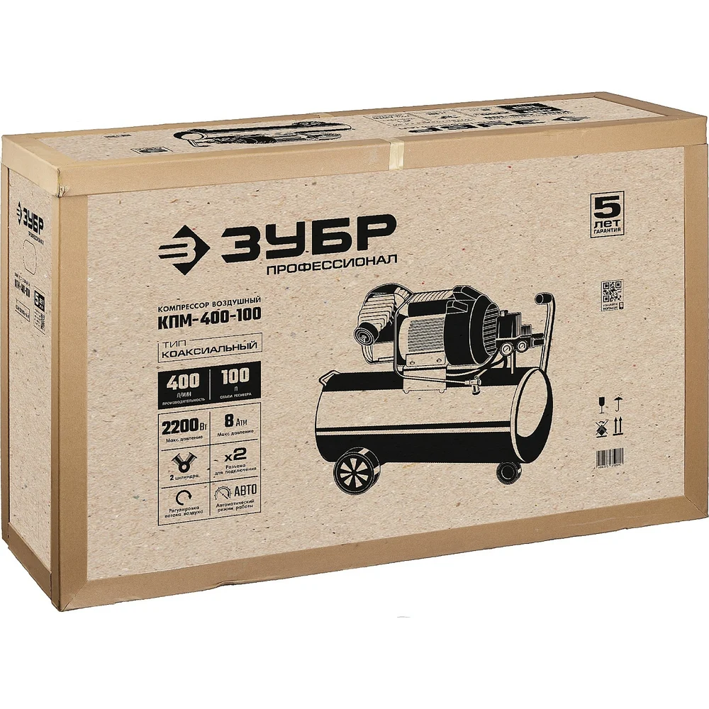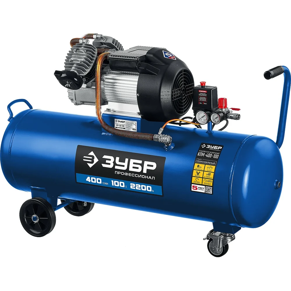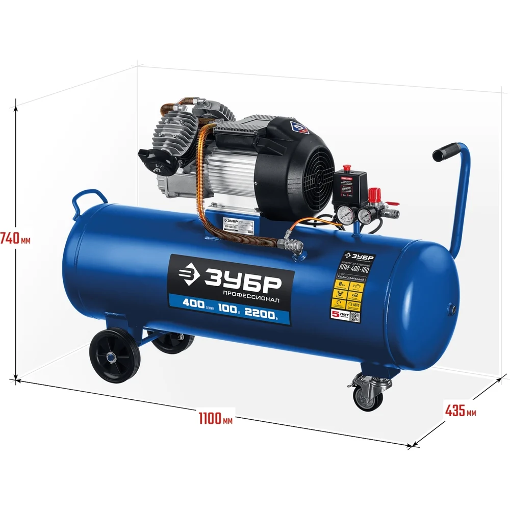 Купить Воздушный масляный компрессор ЗУБР Профессионал 400 л/мин, 100 л, 2200 Вт, КПМ-400-100 по лучшей цене с доставкой - интернет магазин №1 в России