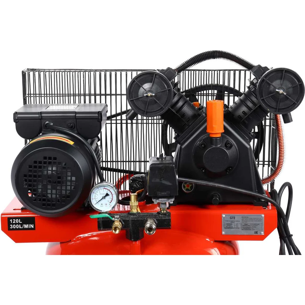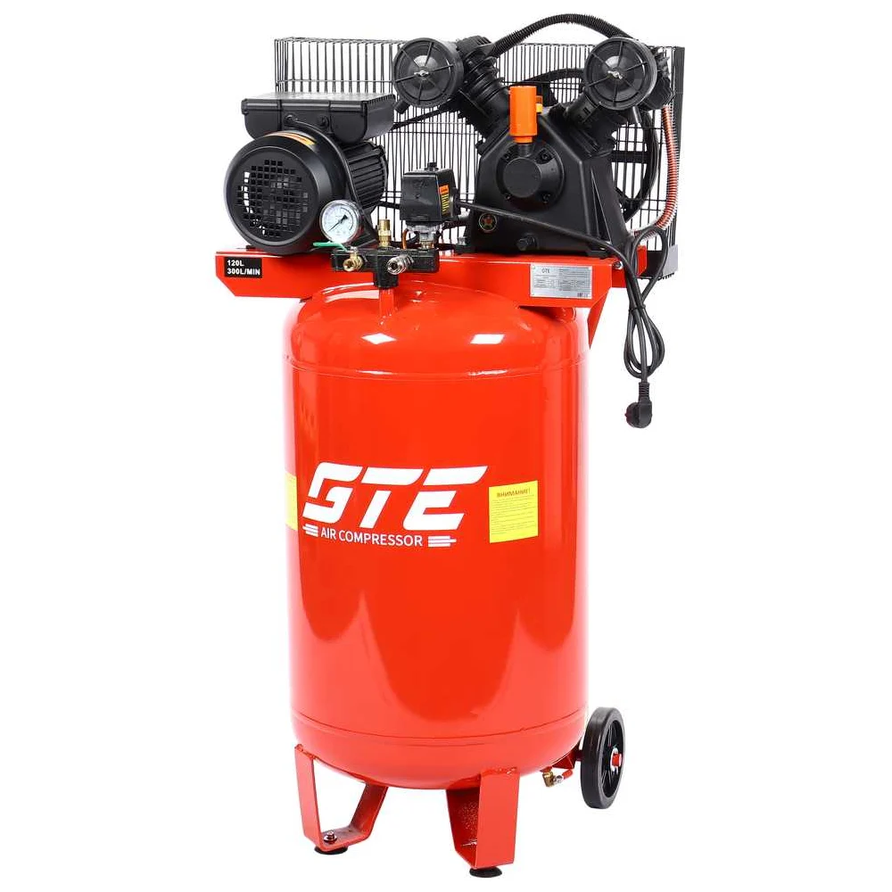 Купить Компрессор вертикальный поршневой с ременным приводом GTE 220В, ресив. 120л, 300л/мин GTE-MR4B120300B по лучшей цене с доставкой - интернет магазин №1 в России