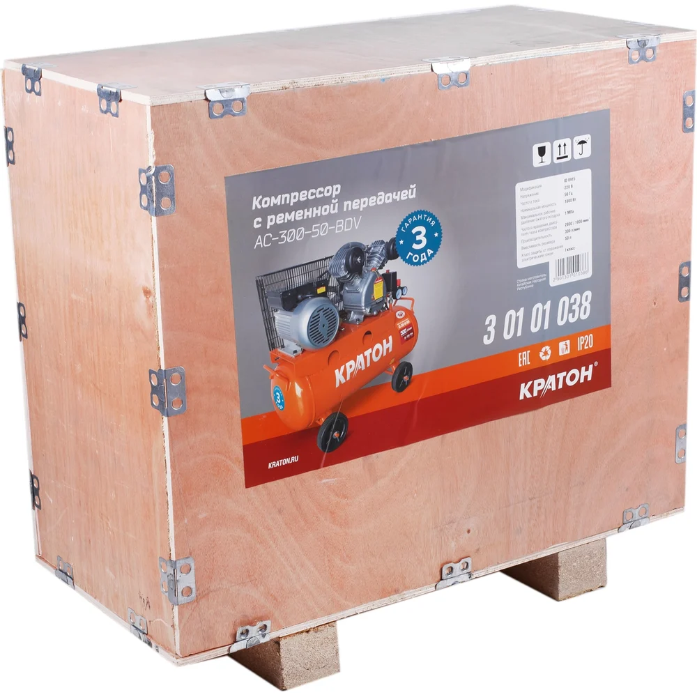 Купить Масляный компрессор с ременным приводом Кратон AC-300-50-BDV 3 01 01 038 по лучшей цене с доставкой - интернет магазин №1 в России