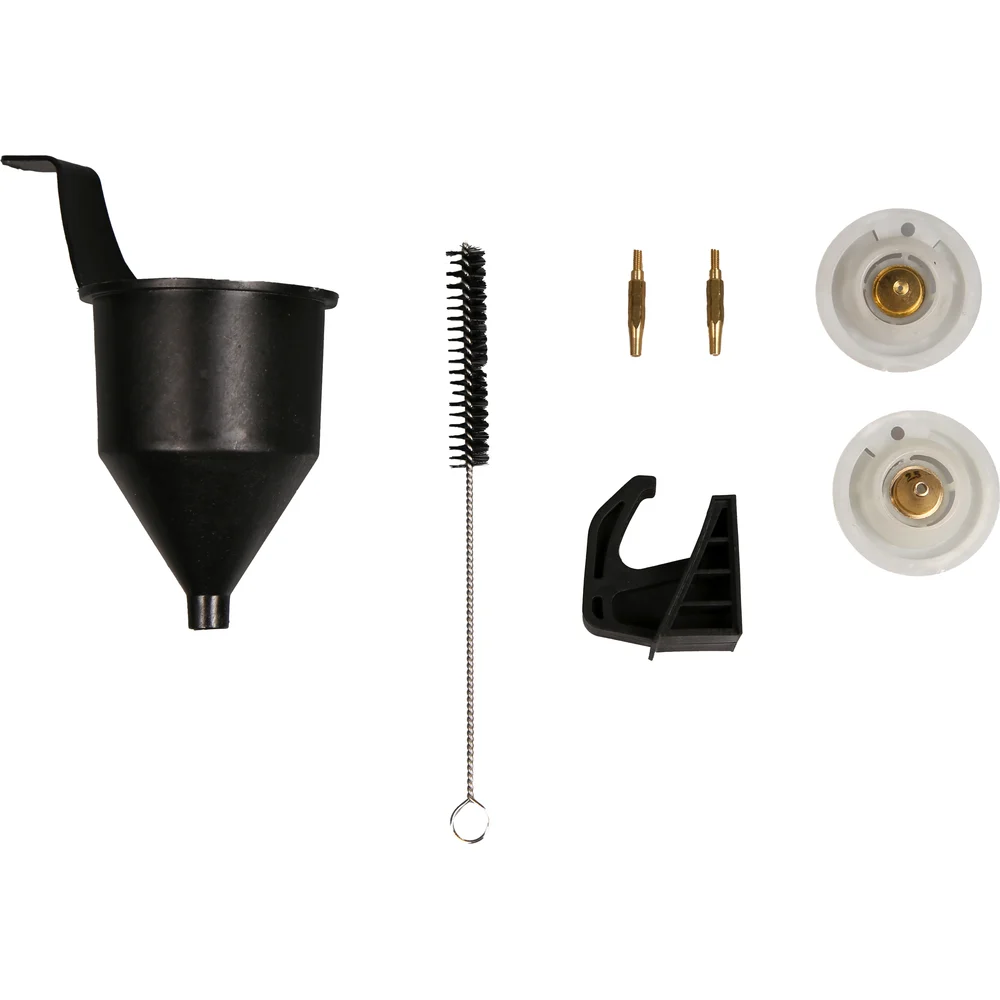 Комплектация пистолет-распылитель - 1 шт; стакан для измерения вязкости - 1 шт; игла для очистки сопла - 1 шт; фильтр для краски - 5 шт; батарейка - 1 шт; насадка (1 устанавливается на пистолет-распылитель) - 3 шт; наконечник сопла (1, 1,8, 2,5 мм) - 3 шт; зарядное устройство - 1 шт; Руководство пользователя - 1 шт