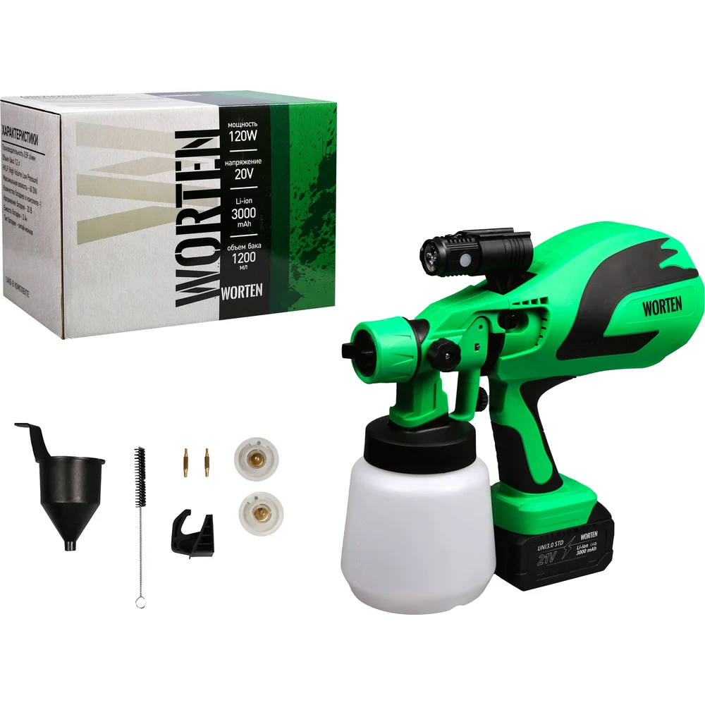 Купить Краскопульт аккумуляторный WORTEN 1х3.0 Ач, 1200 мл КА-90000711 по лучшей цене с доставкой - интернет магазин №1 в России