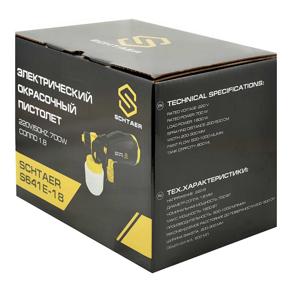 Купить Электрический окрасочной пистолет SCHTAER 220V/50Hz, 650W, сопло 1.8 S641E-18 по лучшей цене с доставкой - интернет магазин №1 в России