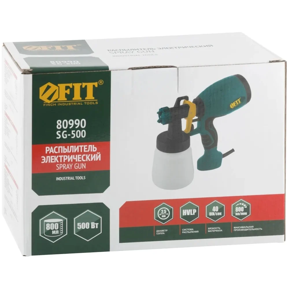 Купить Электрический распылитель FIT 500 Вт, 2,5 мм, 800 мл, 40 DIN/сек, 800 мл/мин, HVLP, коробка 80990 по лучшей цене с доставкой - интернет магазин №1 в России