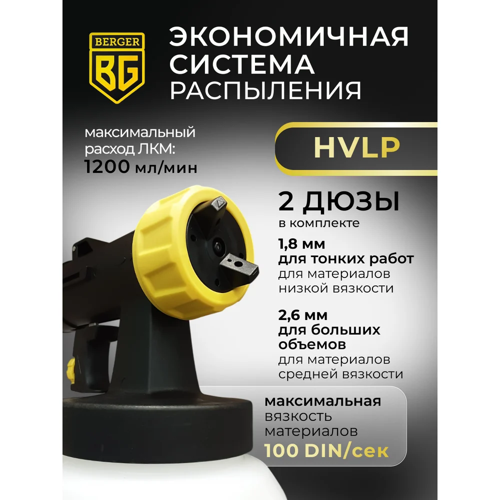Электрический универсальный краскопульт BERGER Малер 550 ВТ, 1.2 л/мин BG1413