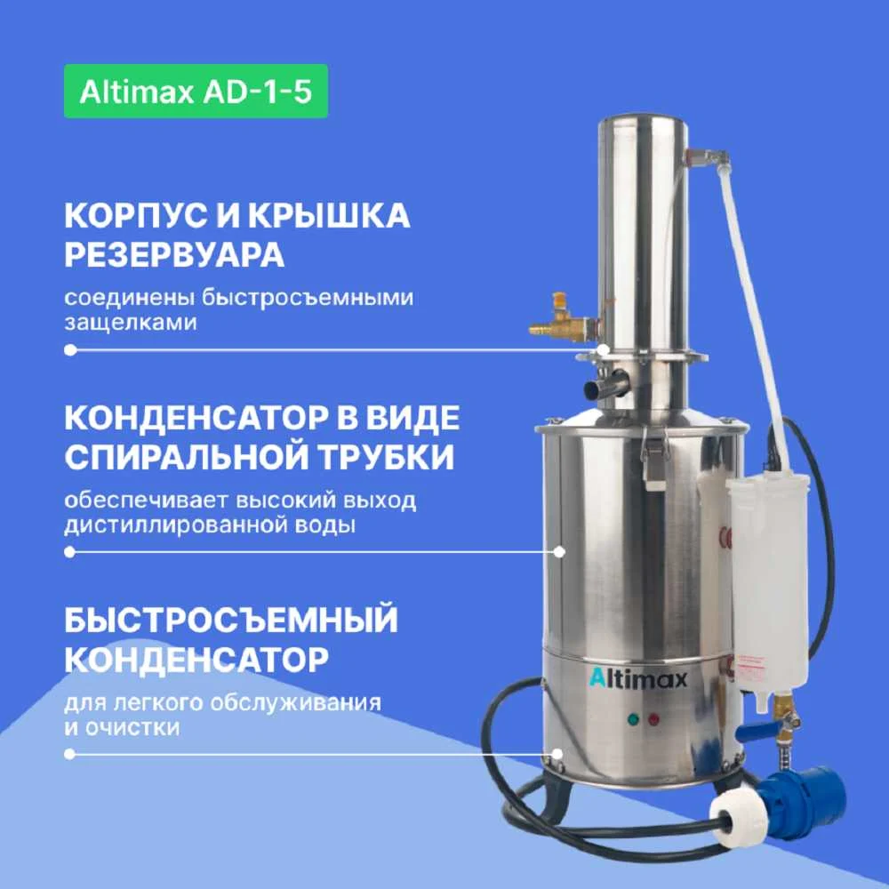Купить Аквадистиллятор Altimax AD-1-5 5 л/ч; 4,5 кВт; 380 В AD050101 по лучшей цене с доставкой - интернет магазин №1 в России