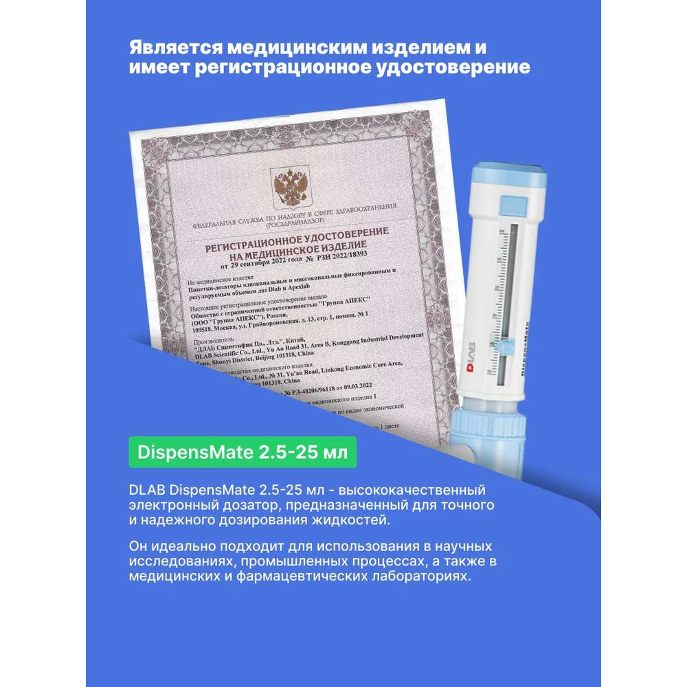 Купить Дозатор бутылочный DLAB DispensMate 2,5-25 мл 7032100103 по лучшей цене с доставкой - интернет магазин №1 в России