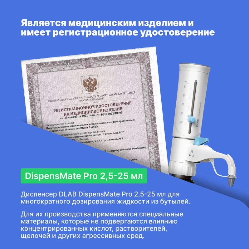 Купить Дозатор бутылочный DLAB DispensMate Pro 2,5-25 мл 7032212003 по лучшей цене с доставкой - интернет магазин №1 в России