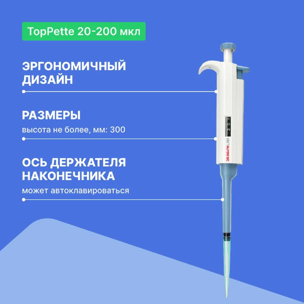 Купить 1-канальный дозатор переменного объема DLAB TopPette 20-200 мкл с Регистрационным удостоверением 7010101009 по лучшей цене с доставкой - интернет магазин №1 в России