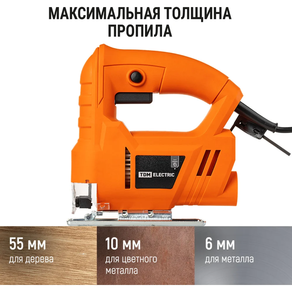 Электрический лобзик TDM ELECTRIC ЛЭ-450/55, мощность 450 Вт, пропил 55 мм, 3000 ход/мин, шнур 3 м, "Гранит" SQ1089-0101