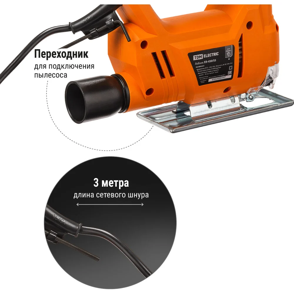 Купить Электрический лобзик TDM ELECTRIC ЛЭ-450/55, мощность 450 Вт, пропил 55 мм, 3000 ход/мин, шнур 3 м, "Гранит" SQ1089-0101 по лучшей цене с доставкой - интернет магазин №1 в России