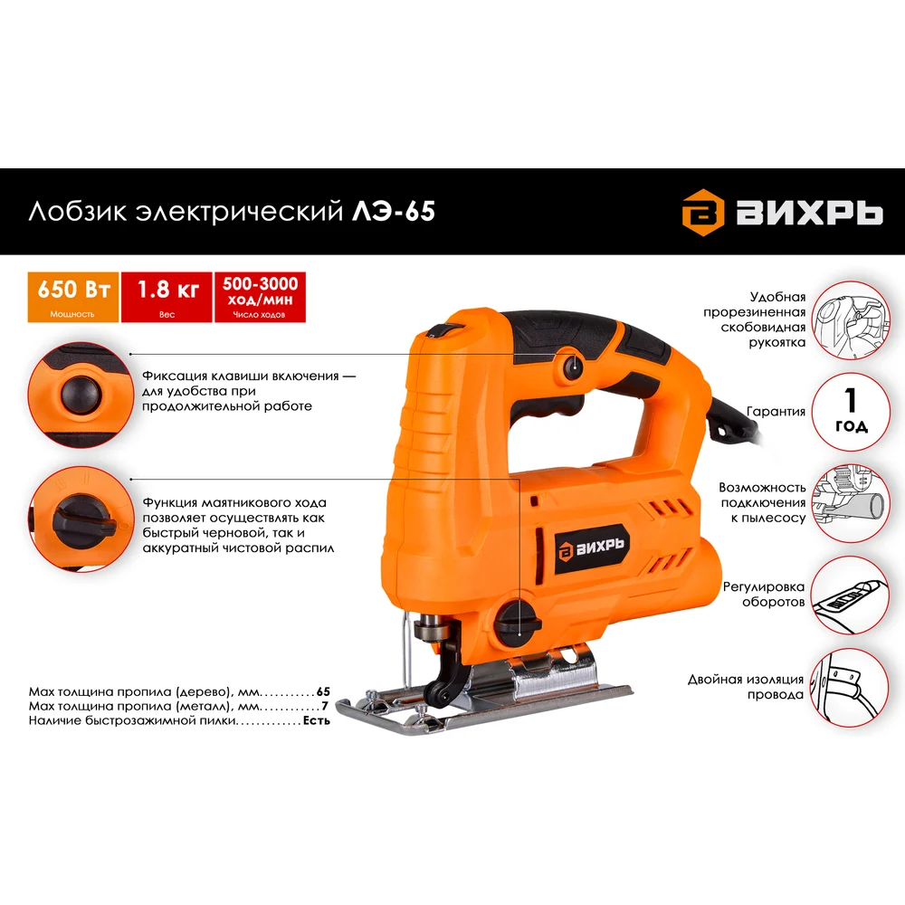 Купить Электрический лобзик Вихрь ЛЭ-65 72/9/4 по лучшей цене с доставкой - интернет магазин №1 в России