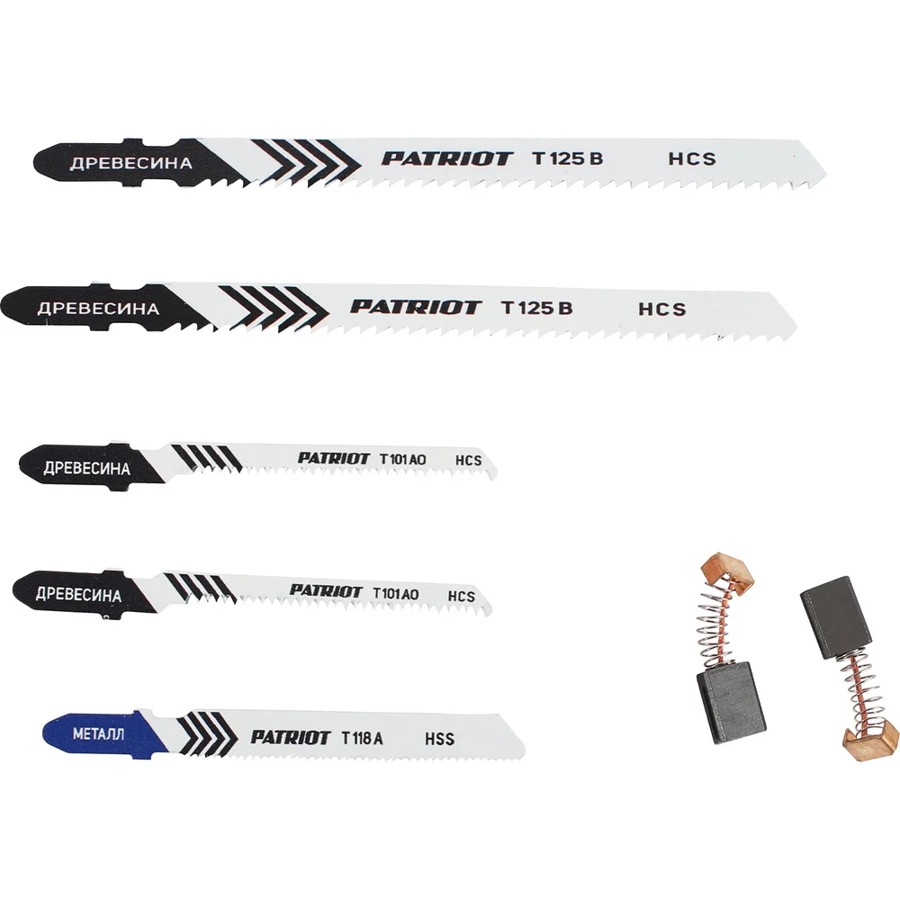 Комплектация Лобзик; Пильное полотно 5 шт; Ключ; Комплект угольных щёток; Параллельная направляющая; Кейс