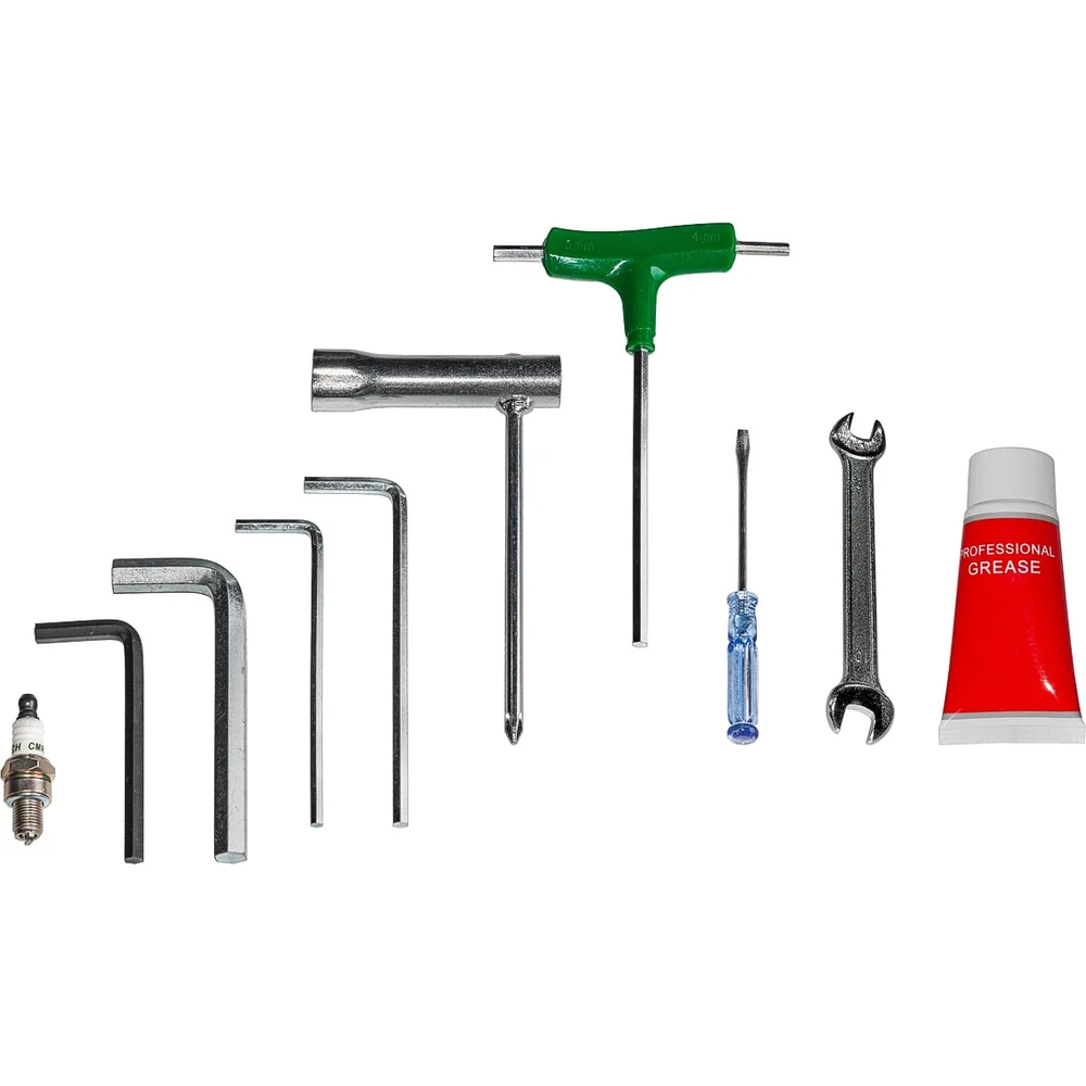 Комплектация Копёр бензиновый; Набор инструмента: накидной ключ, гаечный ключ, свечной ключ, отвертка, шестигранные ключи - 3 шт; Насадка диаметром 49 мм; Насадка диаметром 69 мм; Насадка диаметром 100 мм; Руководство по эксплуатации; Гарантийный талон