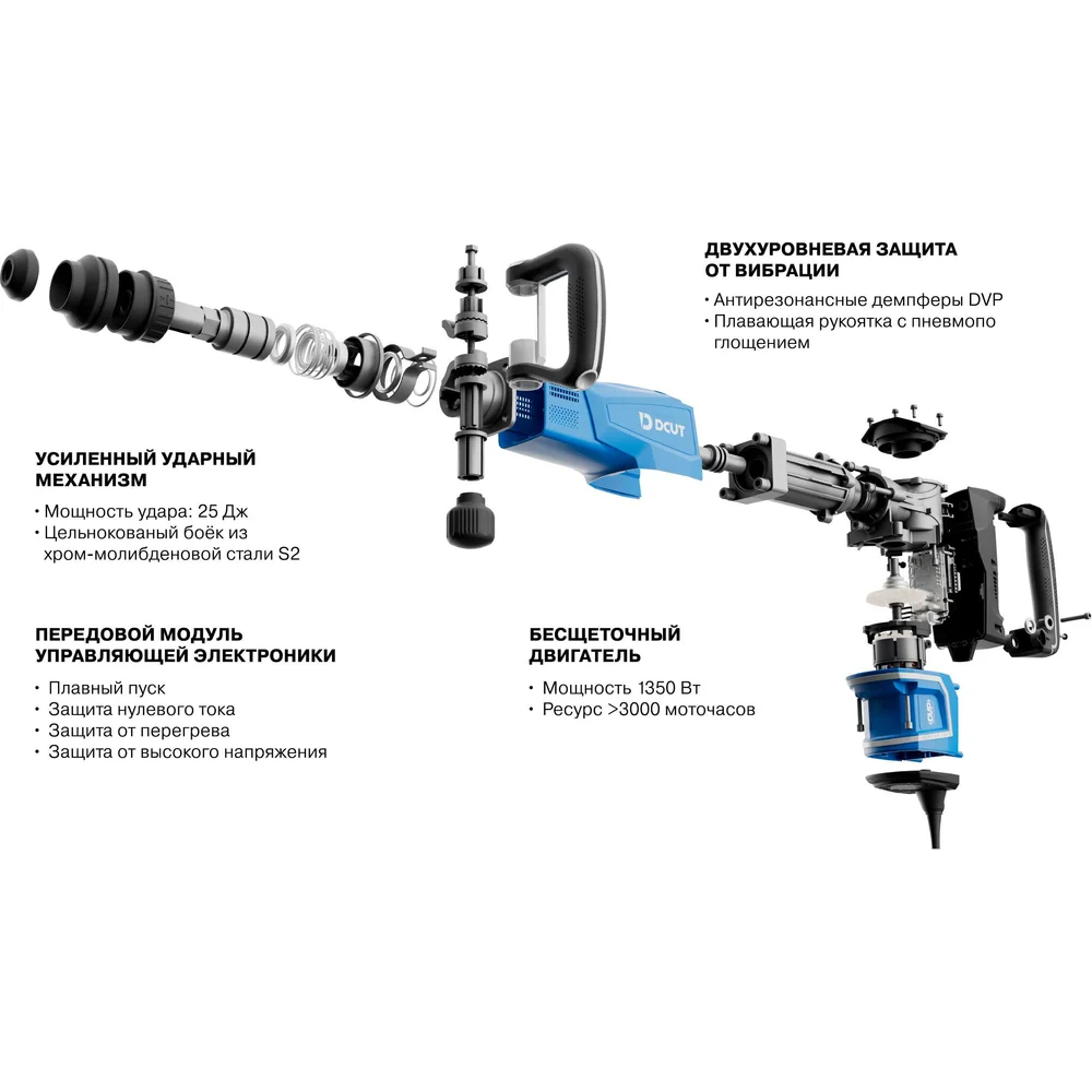 Купить Молоток отбойный DCUT SDS Max, 25Дж, 1350Вт, 900-1800 у/м, 10кг, DBHJ2514+CD61102400+CD62102400 DBHJ2514-SP2 по лучшей цене с доставкой - интернет магазин №1 в России