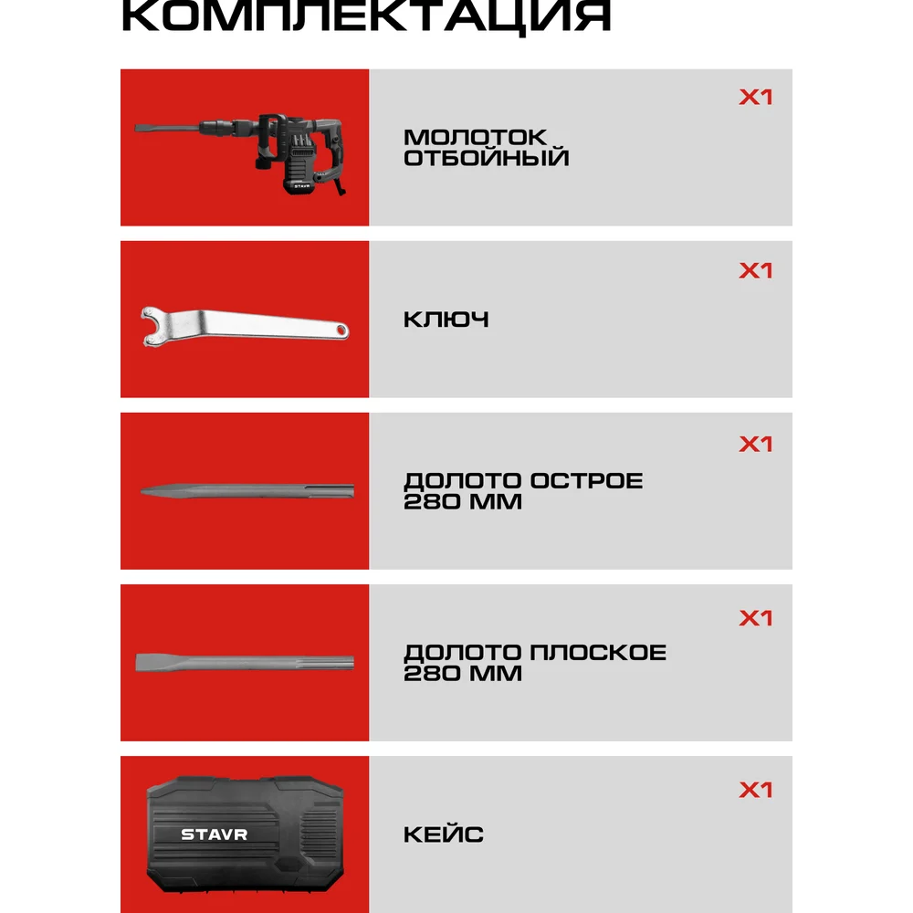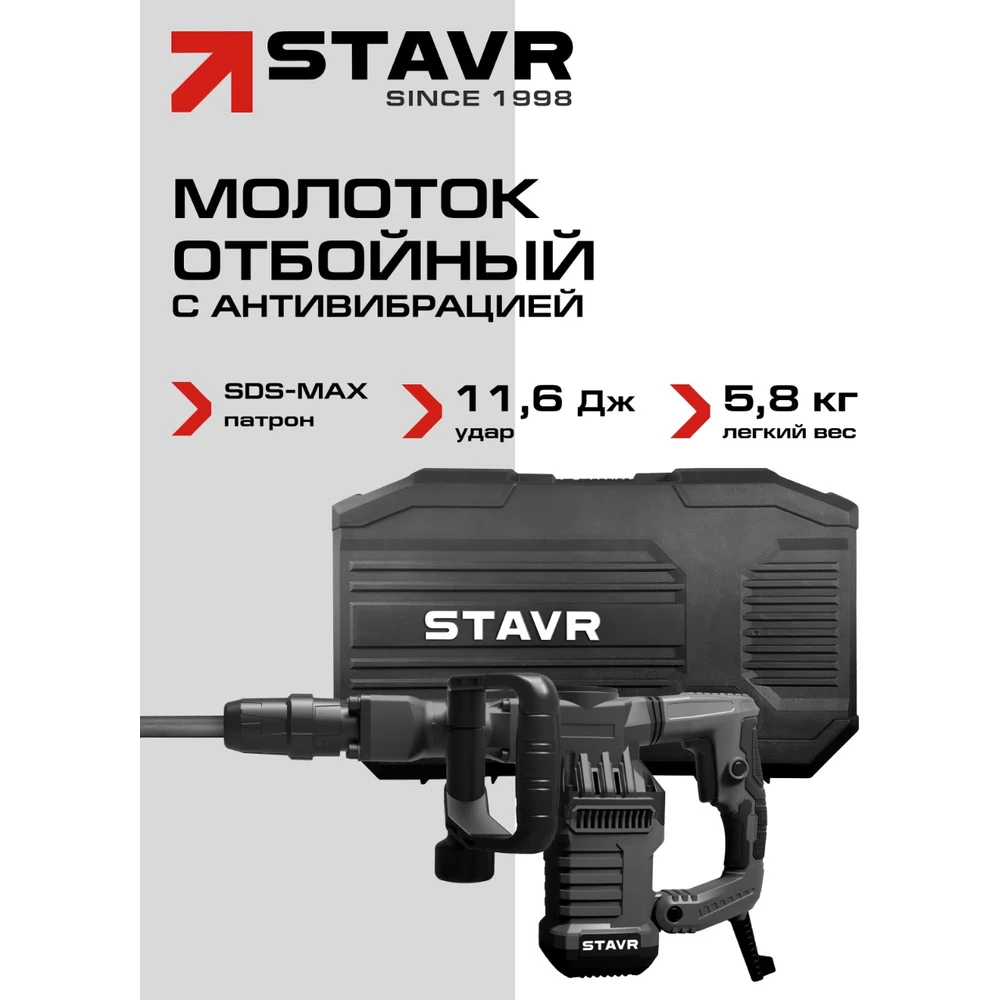 Купить Молоток отбойный СТАВР SDS-MAX, 11,6Дж, 1400Вт, Stavr SDH 1400, 5,8кг, AVS, 3800уд/мин, кабель 5м (набор оснастки, кейс) 9030400124 по лучшей цене с доставкой - интернет магазин №1 в России