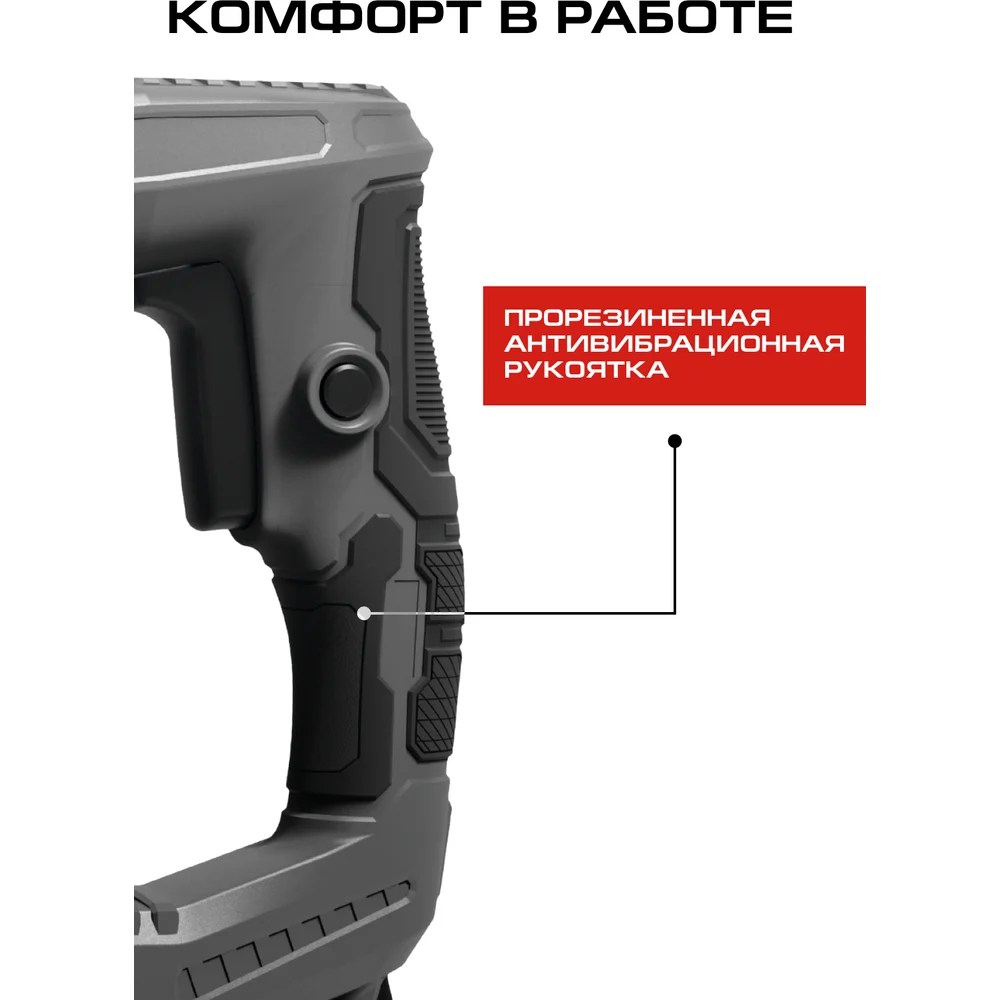 Комплектация Отбойный молоток; боковая рукоятка; ключ; долото (2 шт: острое и плоское); кейс; руководство по эксплуатации