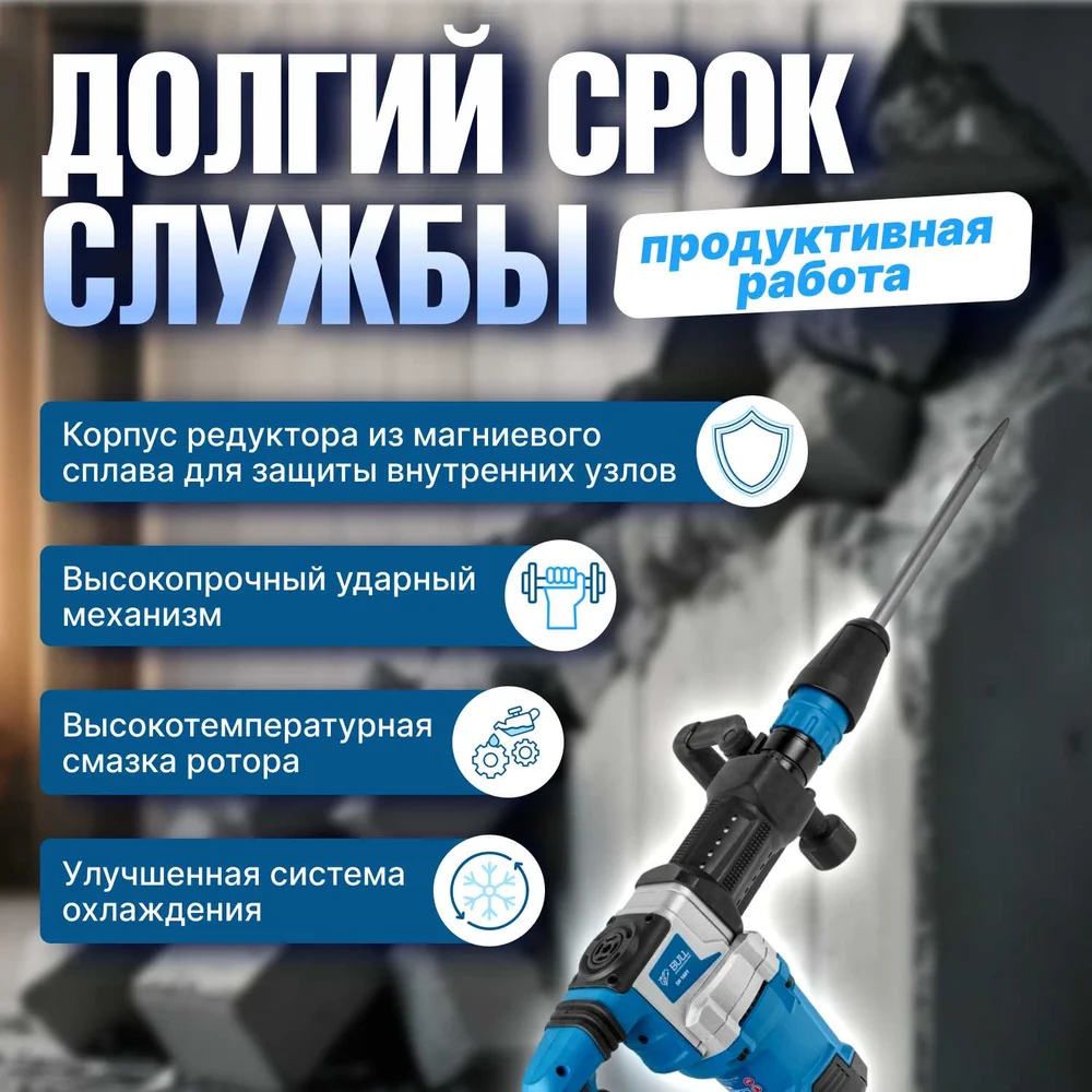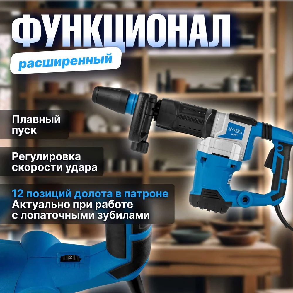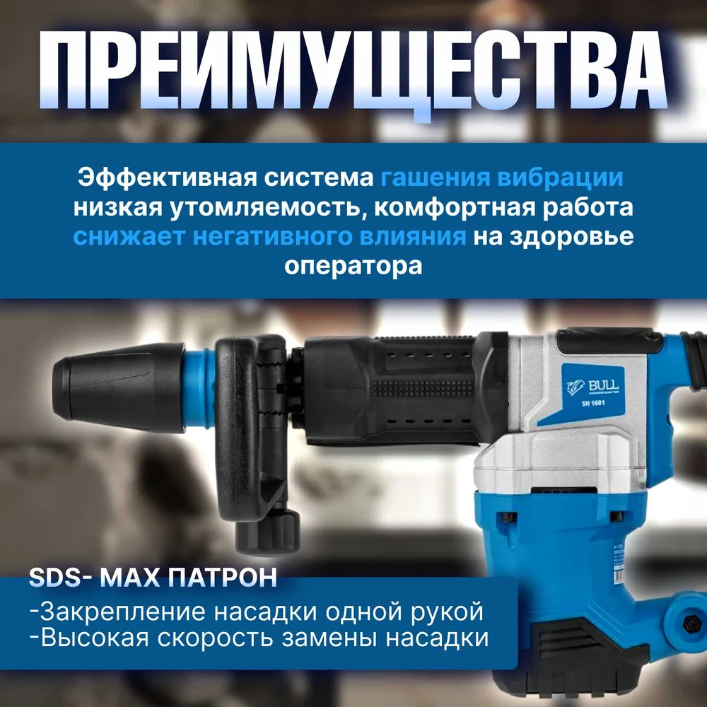 Купить Отбойный молоток BULL SH 1601 в чем. 1500 Вт, 9-25 Дж, SDS-max, 900-2100 уд/мин, 5м кабель 1333623 по лучшей цене с доставкой - интернет магазин №1 в России