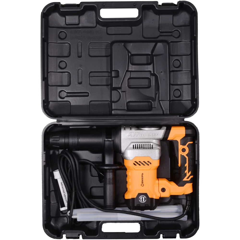 Комплектация Отбойный молоток; Пика; Долото; Дополнительная рукоятка; Кейс пластмассовый; Смазка; Запасные щетки