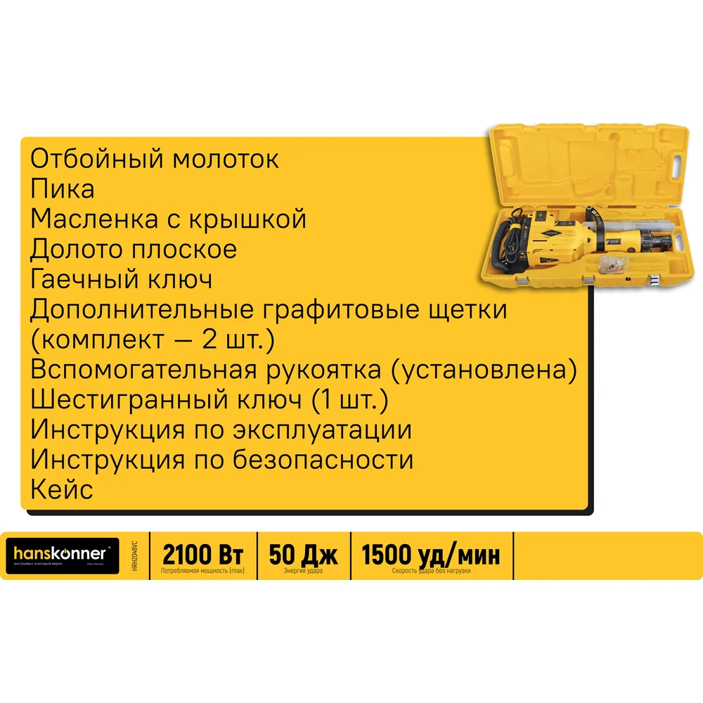 Купить Отбойный молоток Hanskonner HRH2048VC по лучшей цене с доставкой - интернет магазин №1 в России