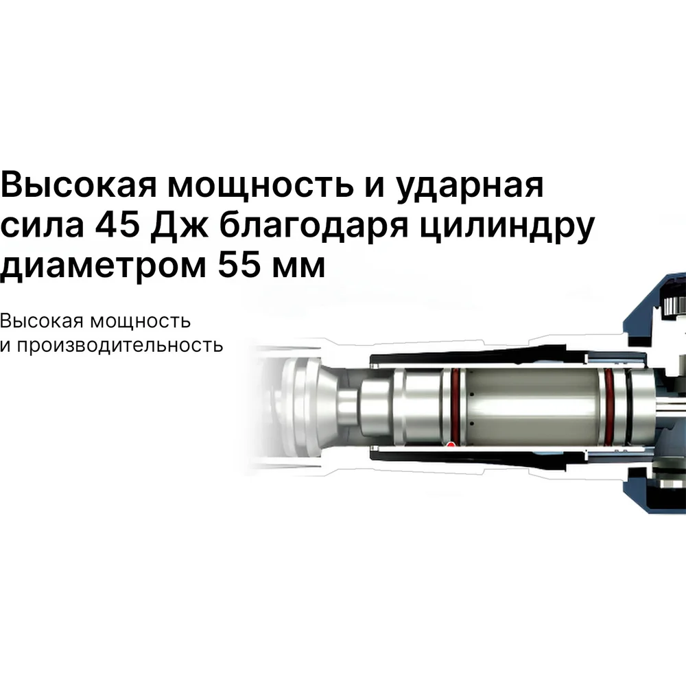 Комплектация Отбойный молоток; Боковая рукоятка; Насадка; Пылезащитный колпачок; Руководство по эксплуатации; Тюбик с консистентной смазкой (только для насадок); Пластиковый кейс