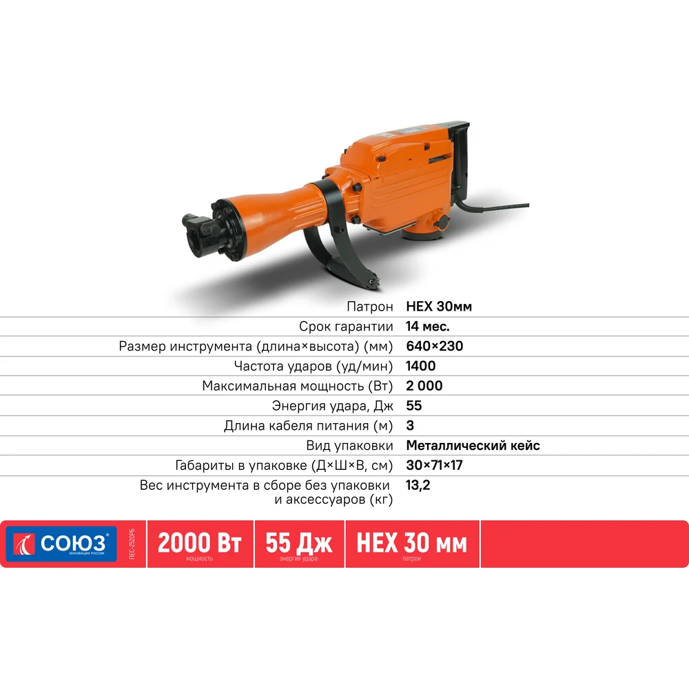 Купить Отбойный молоток Союз ПЕС-2520РБ по лучшей цене с доставкой - интернет магазин №1 в России