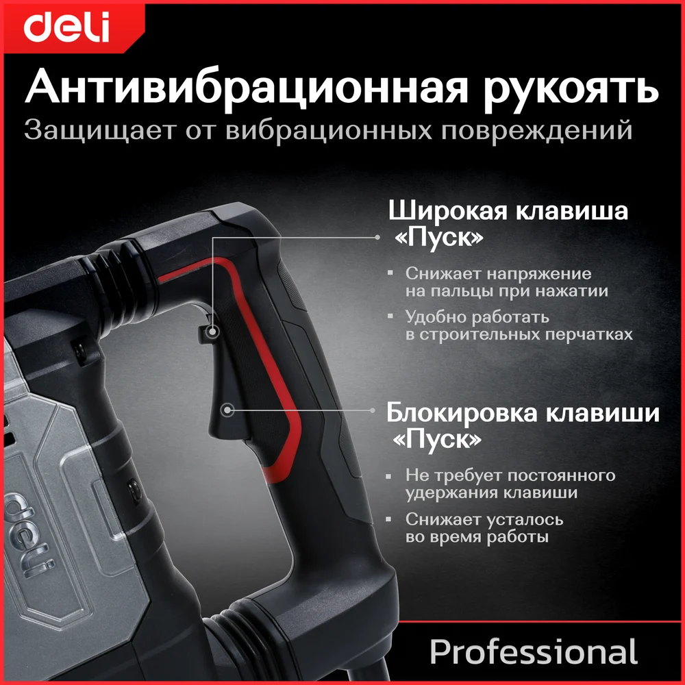 Купить Профессиональный отбойный молоток DELI DE-DG15-2E 134563 по лучшей цене с доставкой - интернет магазин №1 в России