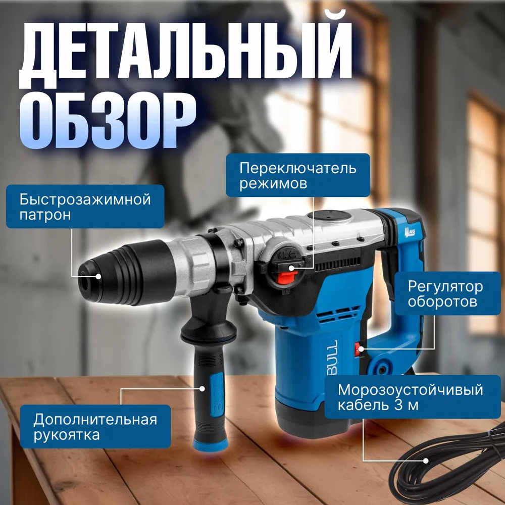Купить Перфоратор BULL BH 4002 в чемодане 1250 Вт, 2-9 Дж, 40 мм, 3 реж. + 1 зуб., 1 сверло, SDS-max, регулировка оборотов 1333484 по лучшей цене с доставкой - интернет магазин №1 в России