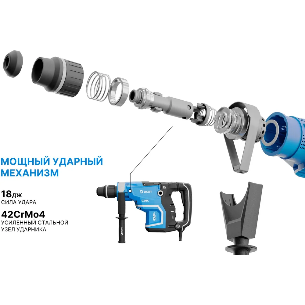 Купить Перфоратор DCUT SDS max, бесщёточный, 1600Вт, 2реж, 18Дж, 1500-3000у/м, 10,3кг. DBRJ1816 DBRJ1816-SP2 по лучшей цене с доставкой - интернет магазин №1 в России