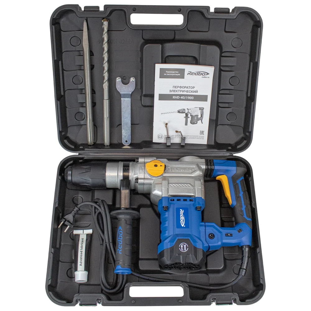 Купить Перфоратор электрический Redbo RHD-40/1900 (SDS-мах, 1900Вт; 10Дж; 40мм, пика, сверло, кейс) 39832 по лучшей цене с доставкой - интернет магазин №1 в России
