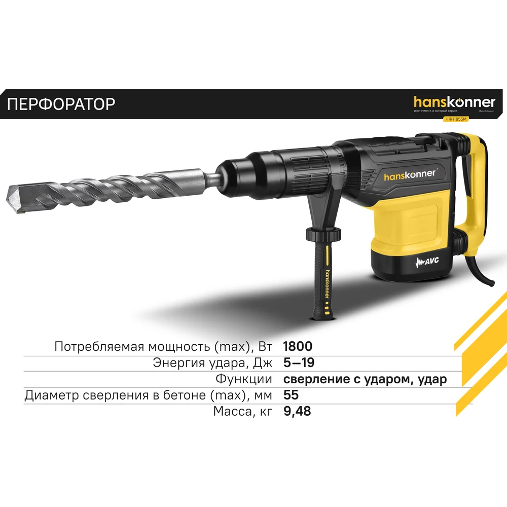 Купить Перфоратор Hanskonner SDS MAX HRH1855M по лучшей цене с доставкой - интернет магазин №1 в России