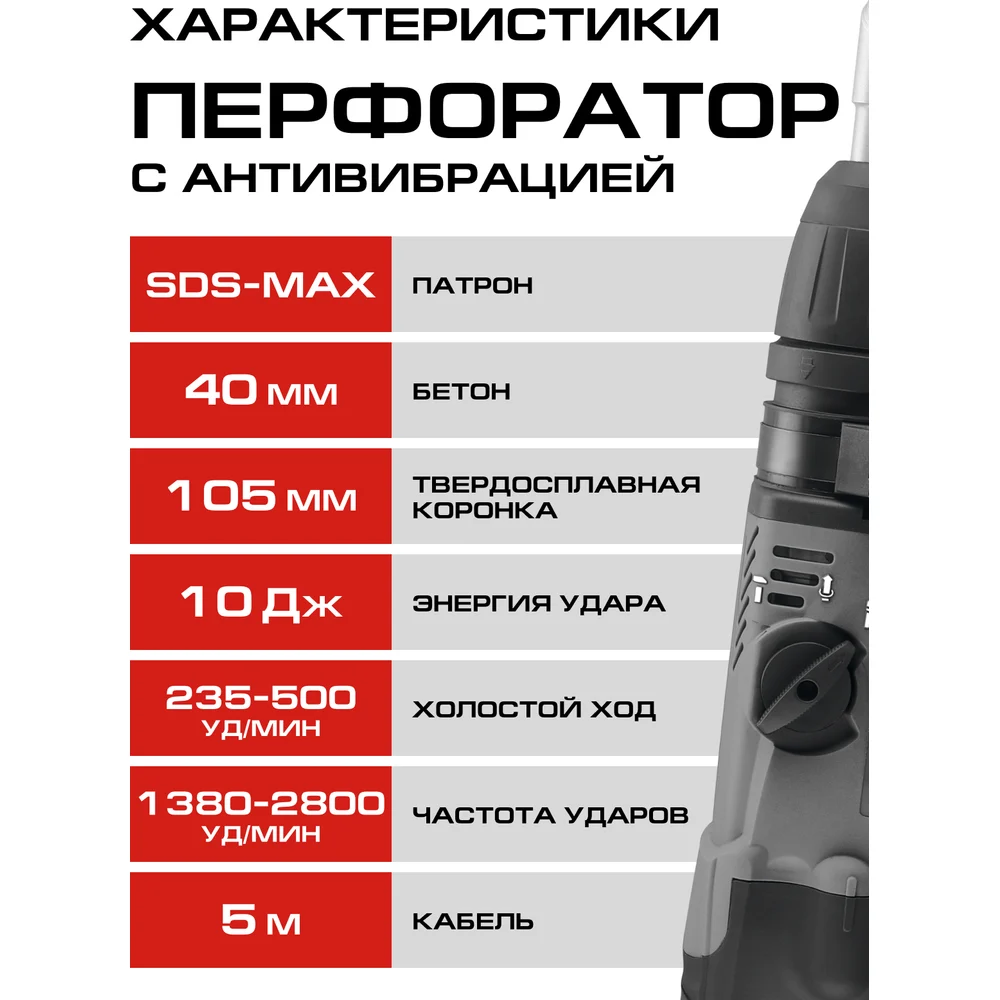 Max диаметр сверления буром (бетон) 40