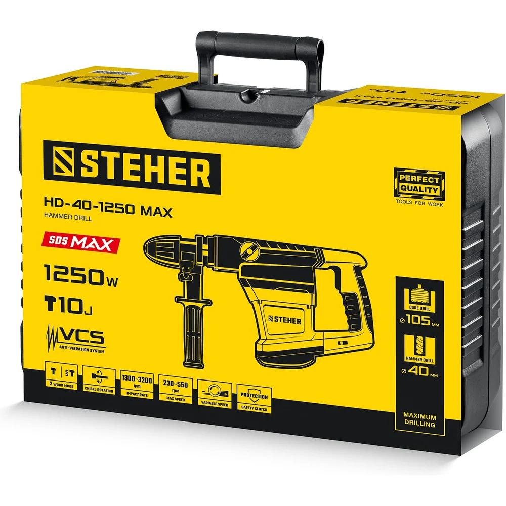 Купить Перфоратор STEHER 40 мм, 1250 Вт, SDS-Max HD-40-1250 MAX по лучшей цене с доставкой - интернет магазин №1 в России