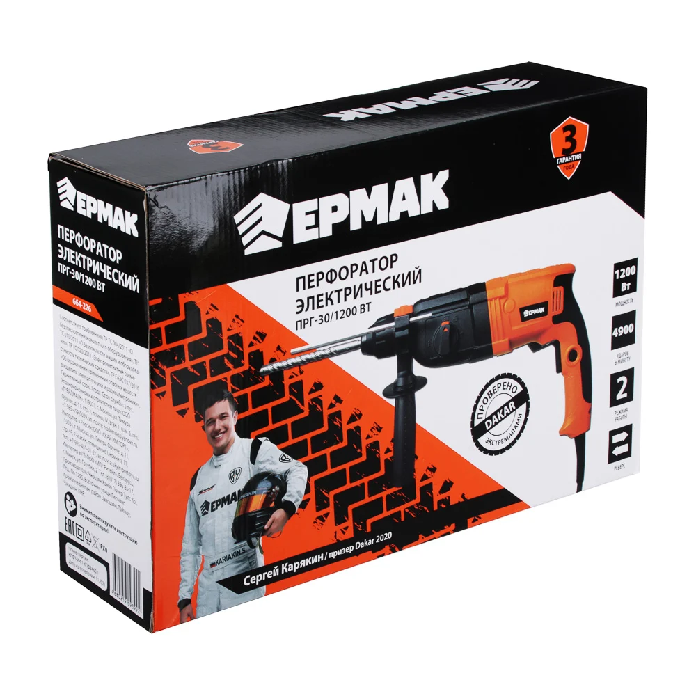 Купить Электрический перфоратор ЕРМАК ПРГ-30/1200Вт + набор буров 664-226 по лучшей цене с доставкой - интернет магазин №1 в России