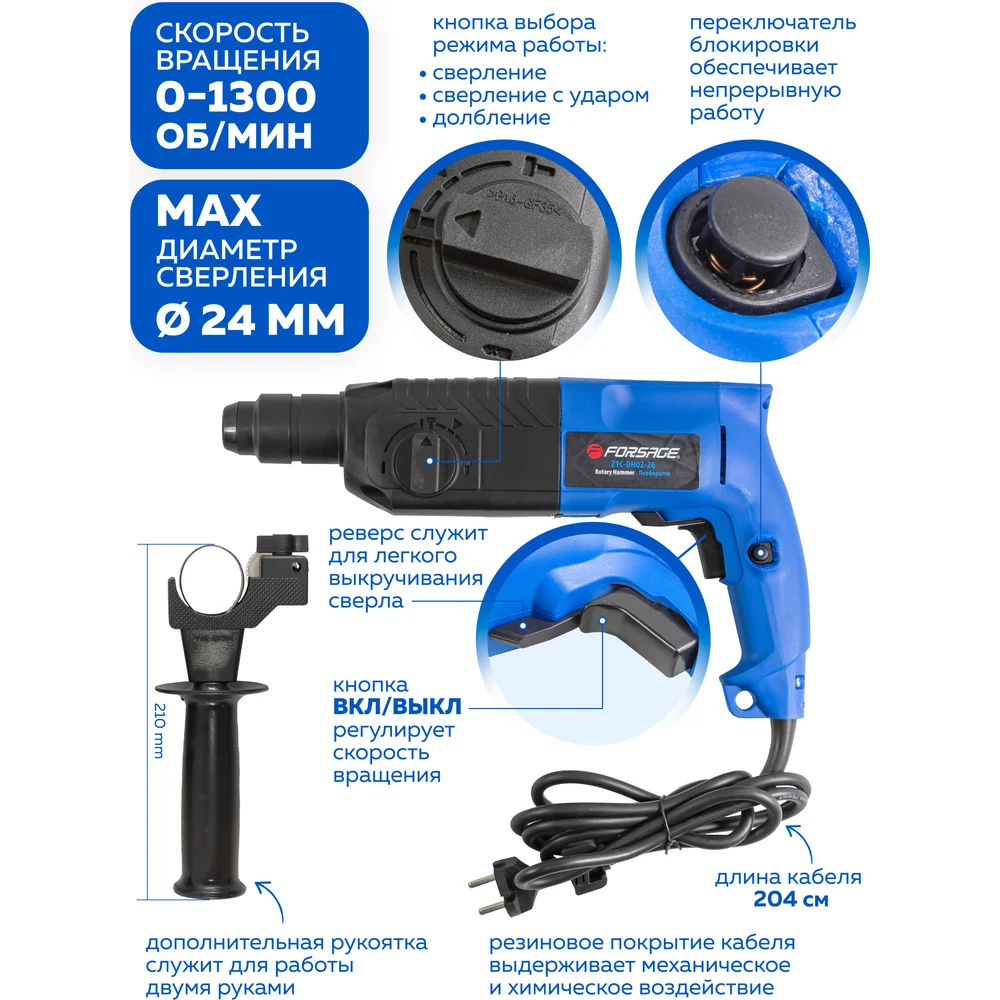 Купить Электрический перфоратор Forsage в кейсе F-Z1C-DH02-26(51851) по лучшей цене с доставкой - интернет магазин №1 в России