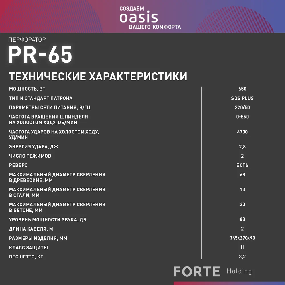 Купить Электрический перфоратор OASIS PR-65 по лучшей цене с доставкой - интернет магазин №1 в России
