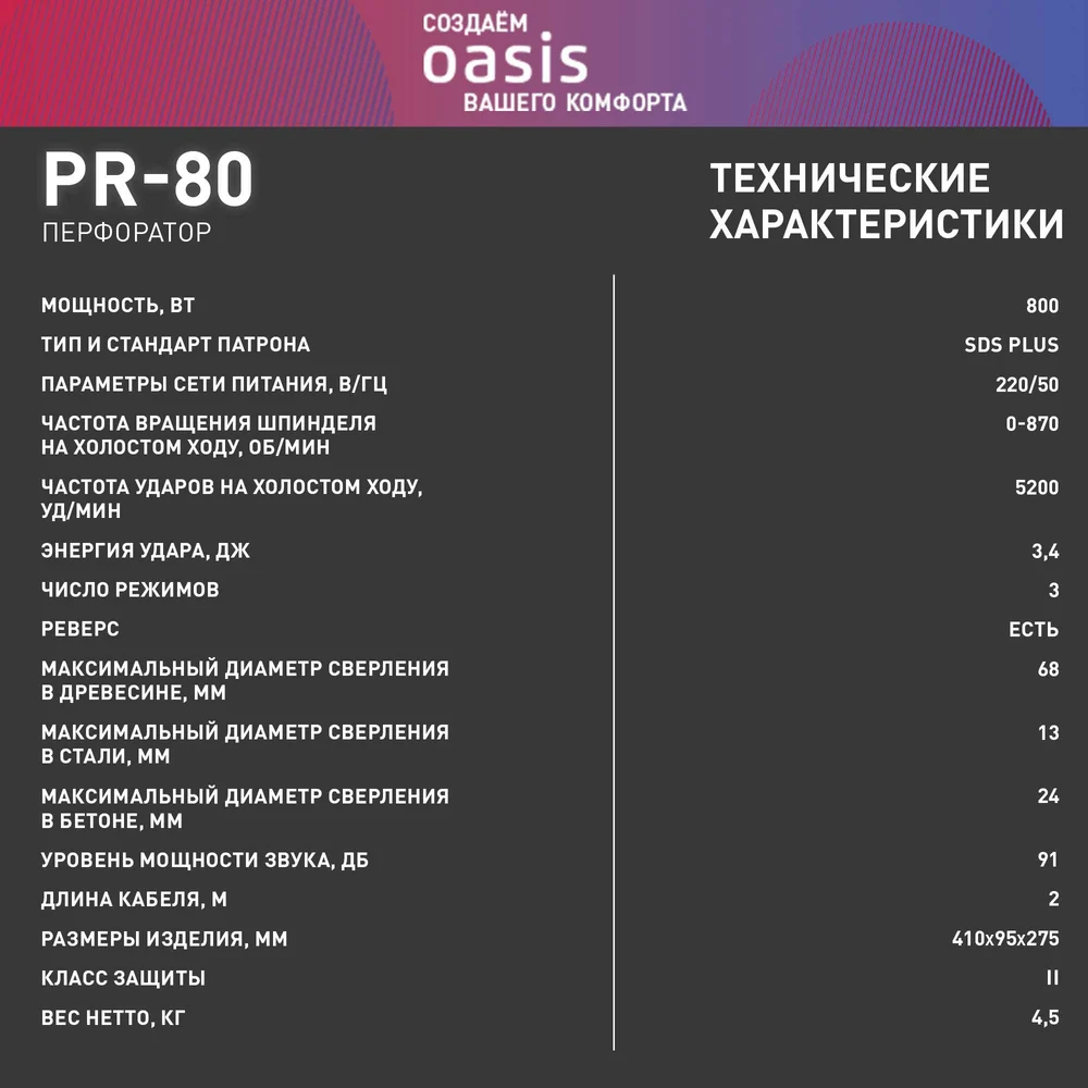 Купить Электрический перфоратор OASIS PR-80 по лучшей цене с доставкой - интернет магазин №1 в России