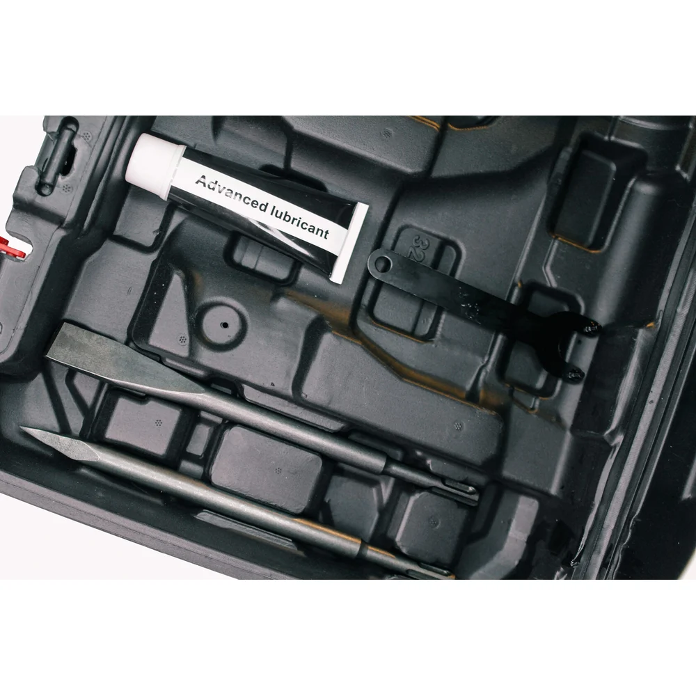 Комплектация Перфоратор; Инструкция; Дополнительная рукоятка; Набор сверл и зубил; Кейс