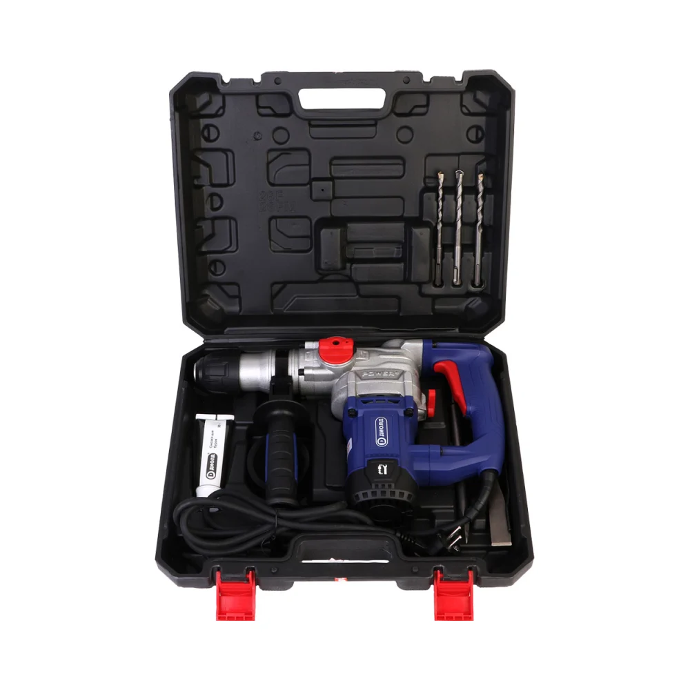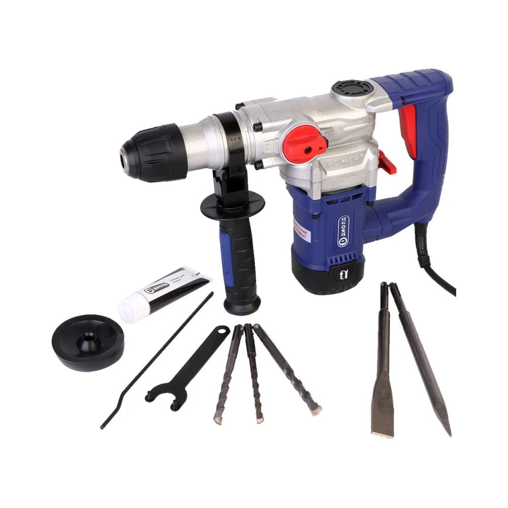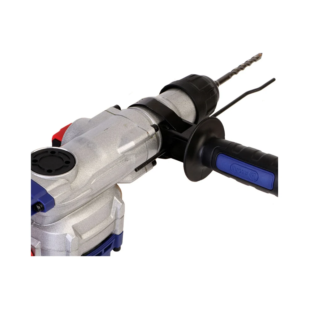 Комплектация Перфоратор; Руководство по эксплуатации; Адреса гарантийных мастерских; Щетка 2 шт; Ключ специальный; Глубиномер; Зубило плоское; Зубило пикообразное; Кольцо пылезащитное; Упаковка (кейс); Буры с хвостовиком типа SDS-plus (6 мм; 8 мм; 10 мм) - 3шт; Тюбик со смазочным материалом - 1шт. Дополнительная рукоятка