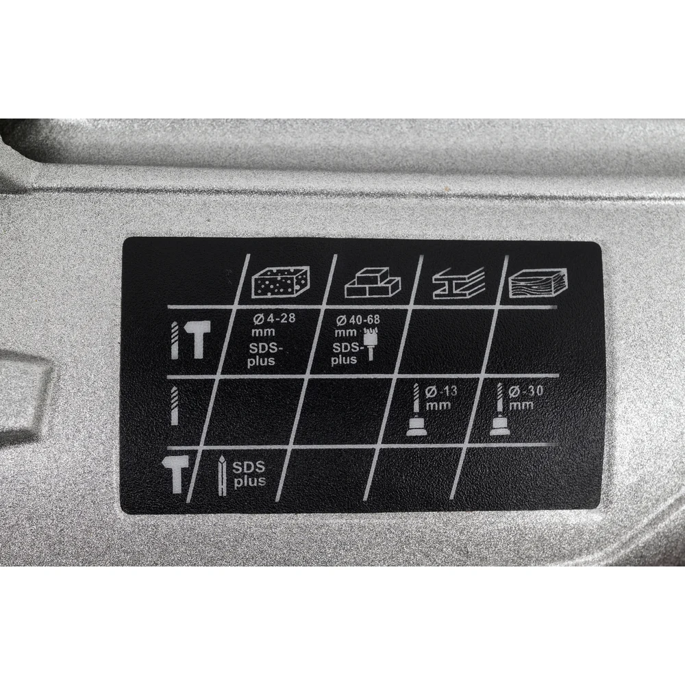Комплектация Перфоратор с патроном SDS-plus 1; Дополнительная рукоятка 1; Ограничитель глубины сверления 1; Насадки с хвостовиком SDS-plus (пика, долото, сверло) 1/1/3; Руководство по эксплуатации 1; Кейс пластиковый 1