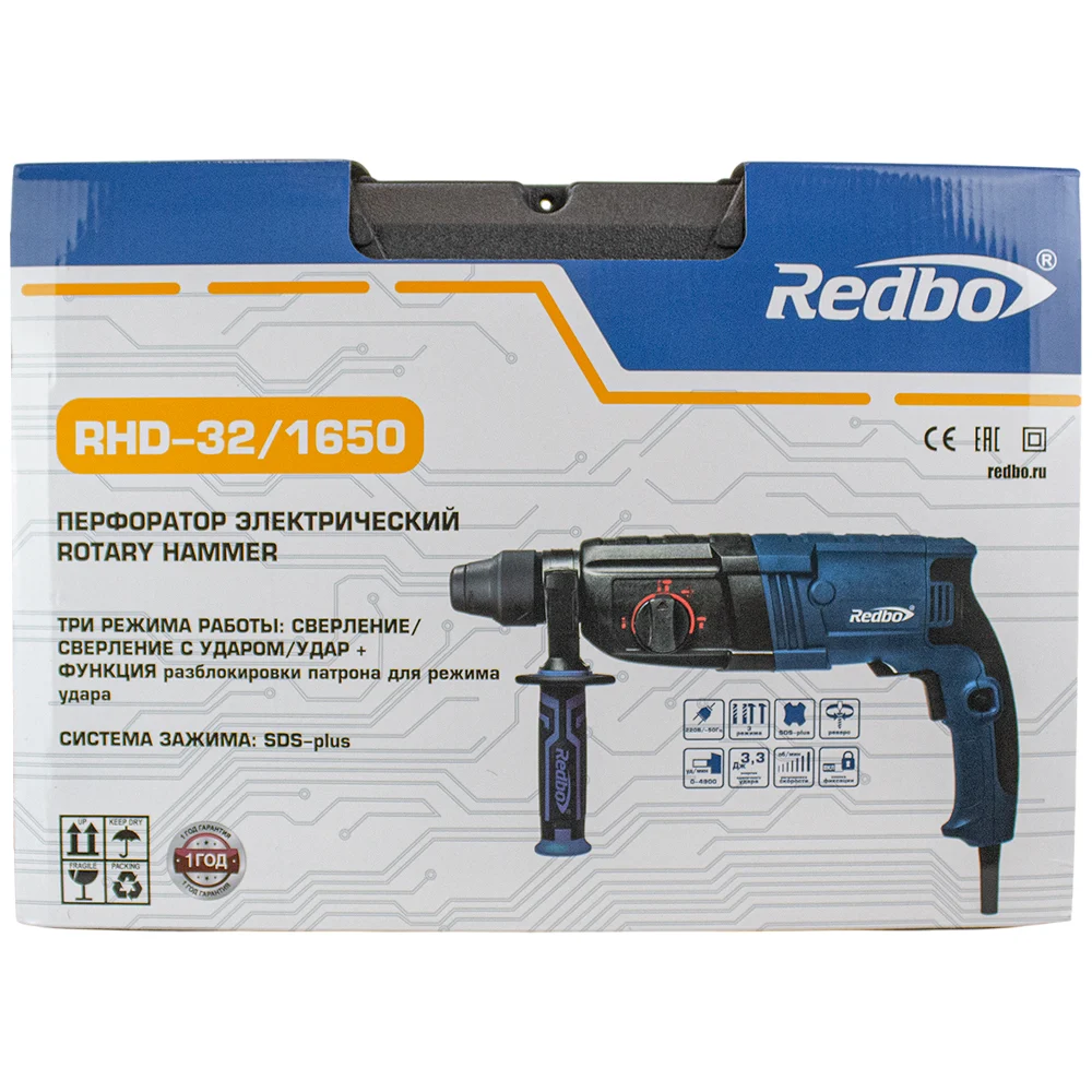 Купить Перфоратор электрический Redbo RHD-32/1650 (1650Вт,SDS-plus, 0-4900 уд/мин, 3.3Дж) 39839 по лучшей цене с доставкой - интернет магазин №1 в России
