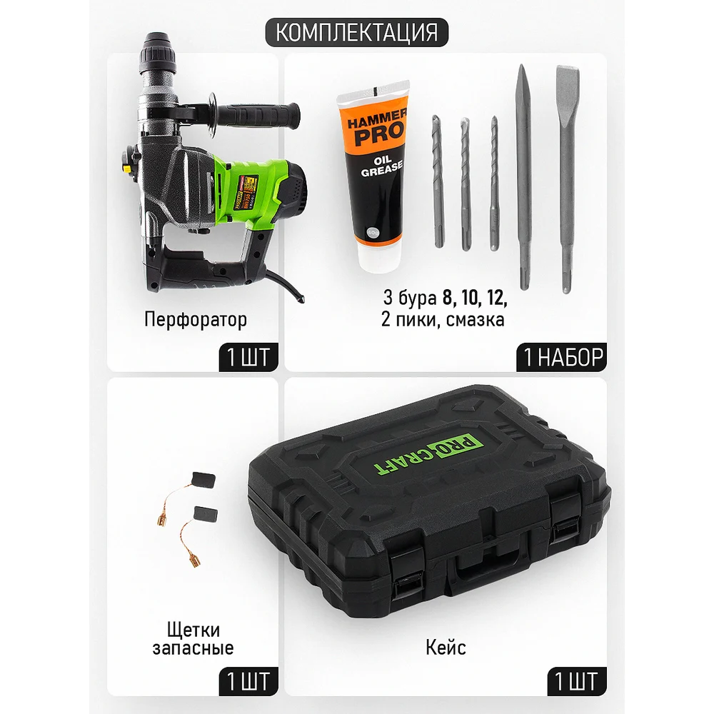 Купить Перфоратор электрический сетевой PROCRAFT Universal BH1750 по лучшей цене с доставкой - интернет магазин №1 в России