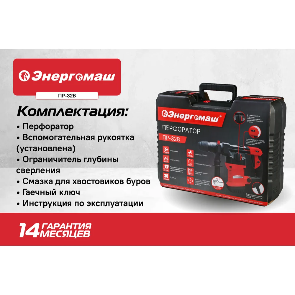 Купить Перфоратор Энергомаш SDS Plus ПР-32В по лучшей цене с доставкой - интернет магазин №1 в России