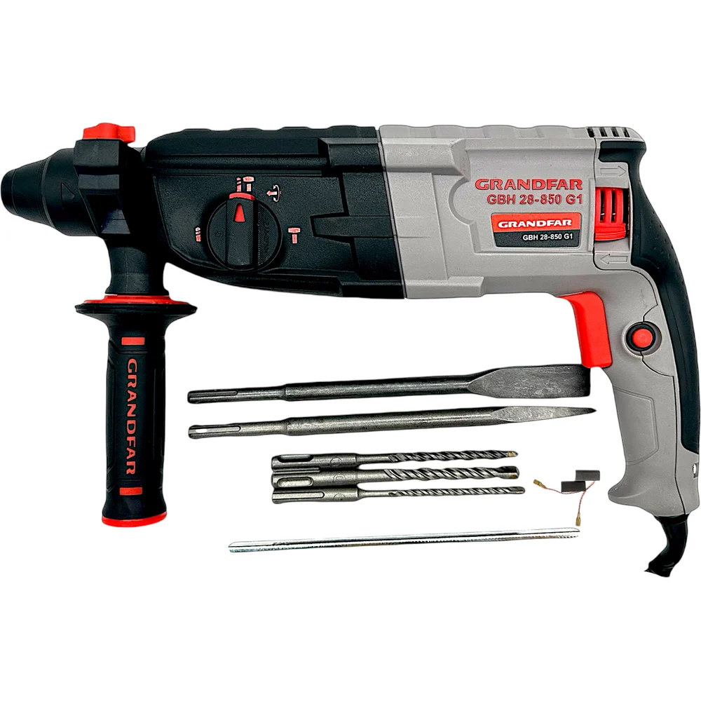 Купить Перфоратор GRANDFAR (щетки 1 пара, зубило плоское 1 шт, пика 1 шт, бур 6/100,8/100,10/100 по 1 шт ) GBH28-850G1 по лучшей цене с доставкой - интернет магазин №1 в России