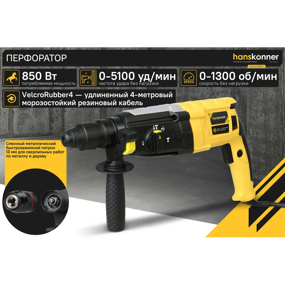 Купить Перфоратор Hanskonner HRH0828REC по лучшей цене с доставкой - интернет магазин №1 в России