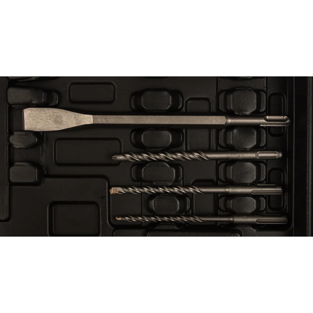 Комплектация Ограничитель глубины сверления; Буры: 6, 8, 10 мм; Пика; Долото; 2 графитовые щётки; Переходник для сверлильного патрона; Сверлильный ключевой патрон (1.5-13 мм); Паспорт; Кейс