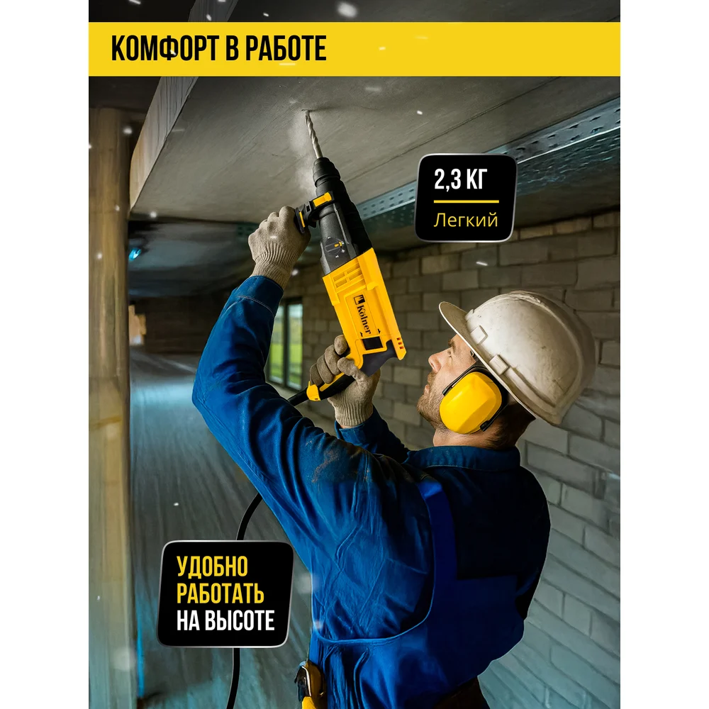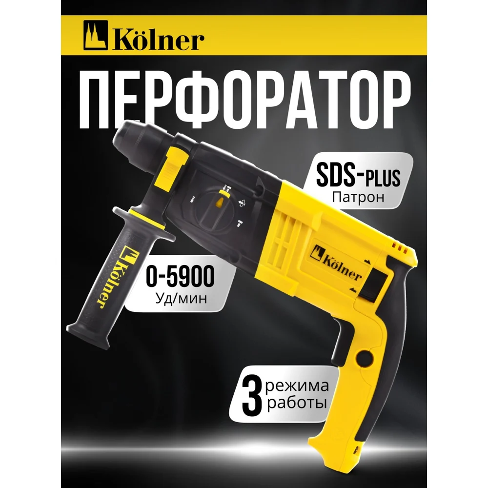 Купить Перфоратор Kolner SDS-PLUS, 20 мм, горизонт, 650Вт, KBH 3-20K, 3 режима, 2.1Дж, 0-1800об/мин, 0-5900уд/мин, кабель 2м 8030300304 по лучшей цене с доставкой - интернет магазин №1 в России